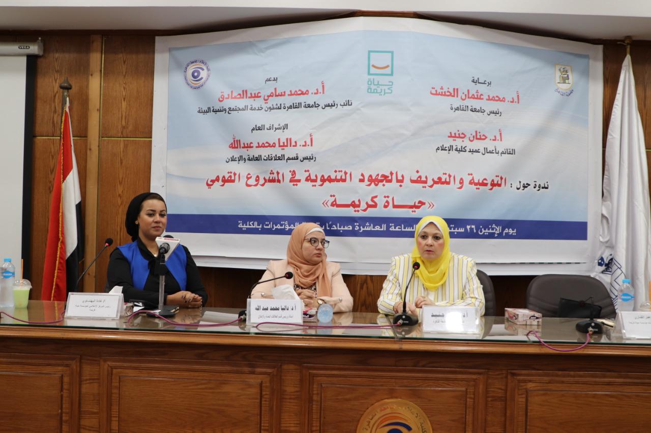 وأقيمت الندوة تحت رعاية د. محمد عثمان الخشت رئيس جامعة القاهرة، ود. حنان جنيد القائم بأعمال عميد الكلية، وبدعم من د. محمد سامي عبد الصادق نائب رئيس الجامعة لشئون خدمة المجتمع، وبحضور آية عمر القماري رئيس مجلس أمناء مؤسسة حياة كريمة، وغادة البهنساوي رئيس المركز الإعلامي للمؤسسة ودكتورة داليا عبد الله رئيس قسم العلاقات العامة والإعلان وذلك بقاعة المؤتمرات بكلية الإعلام جامعة القاهرة وبحضور طلابي كبير.