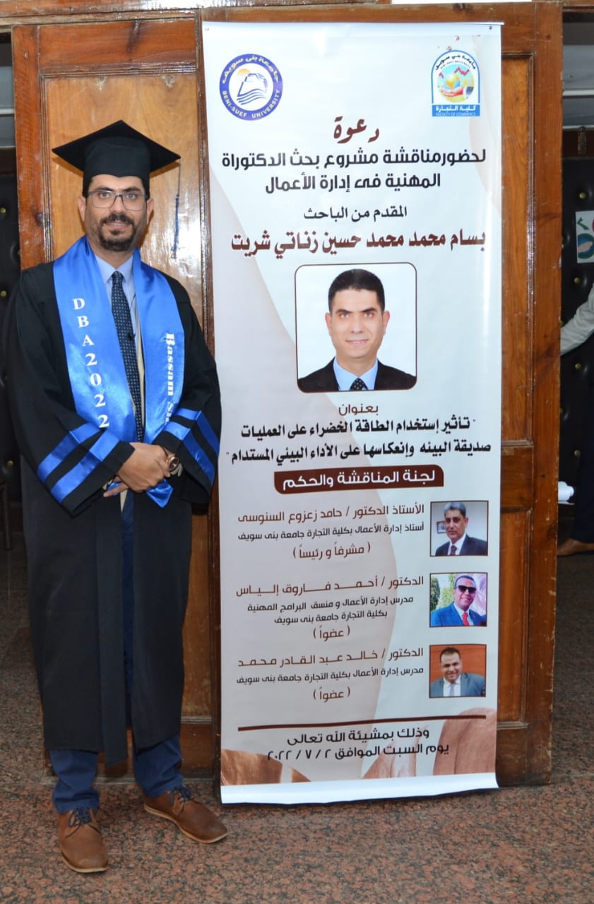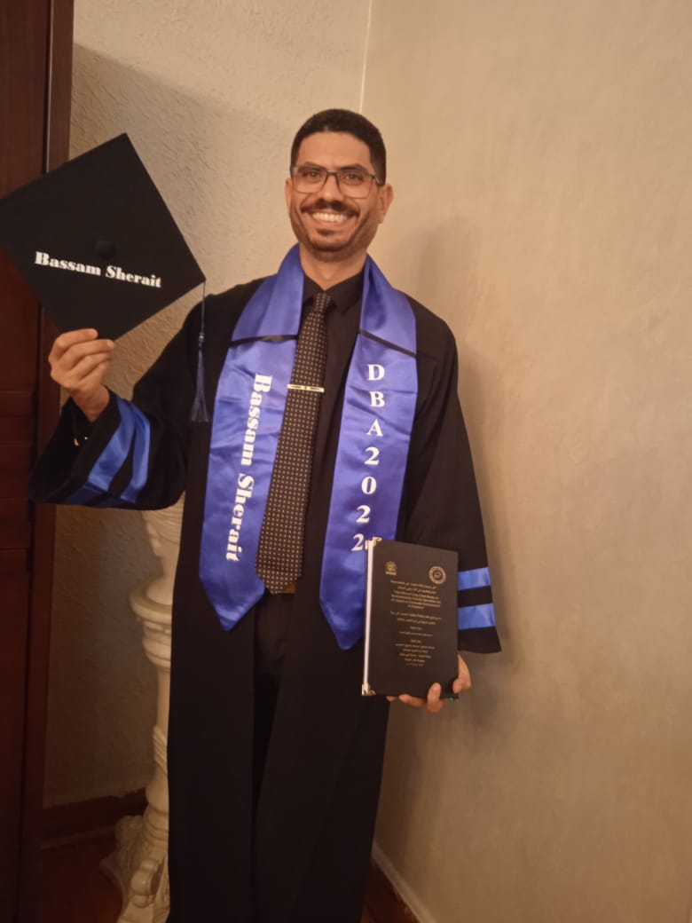 حصل الدكتور بسام شريت على الدكتوراة الثانية في إدارة الأعمال DBA لإدارة استخدام الطاقة الخضراء وتأثيرها على الأداء البيئي المستدام وحصده للمركز الأول على الدفعه بتقدير ممتاز مع مرتبة الشرف.