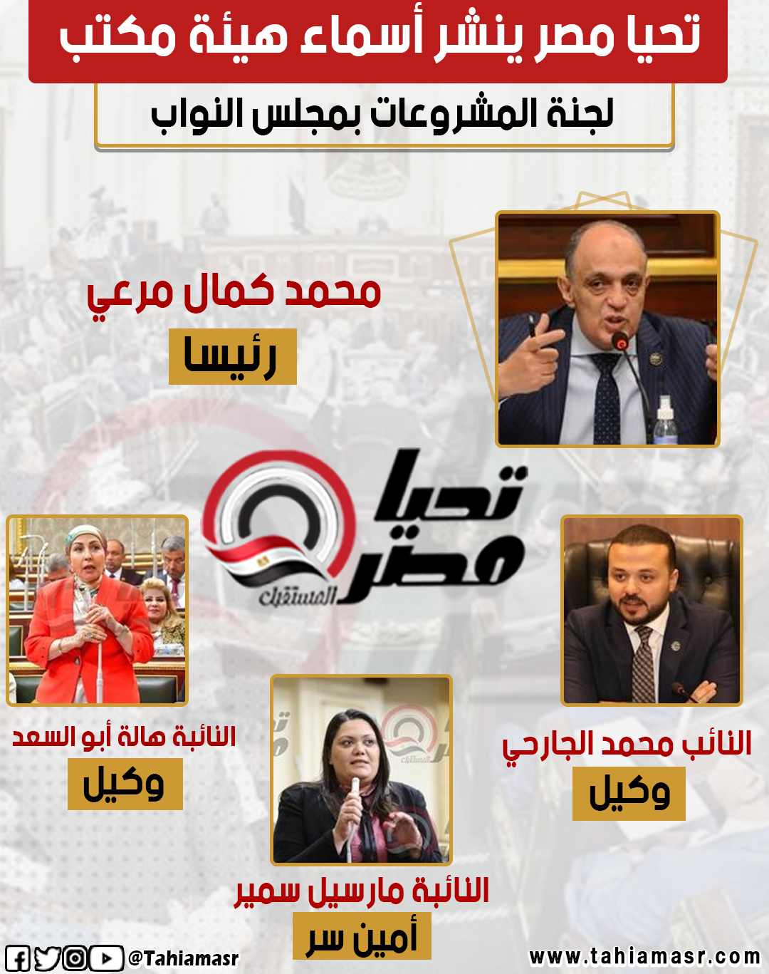 « مرعي رئيسا»تحيا مصر ينشر تشكيل هيئة مكتب مشروعات النواب بدور الانعقاد الثالث