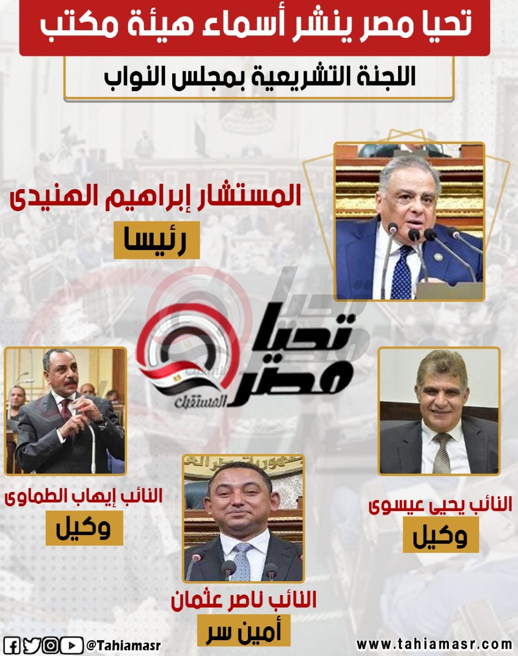 الهنيدى رئيسا ..تحيا مصر ينشر تشكيل هيئة مكتب تشريعية النواب بدور الانعقاد الثالث