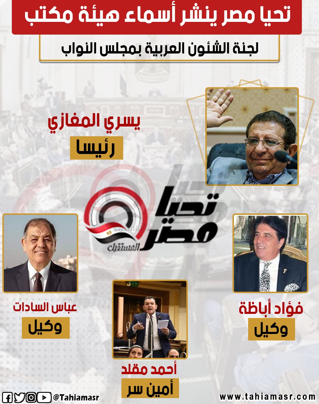 المغازى رئيسا .. تحيا مصر ينشر تشكيل هيئة مكتب عربية النواب فى دور الانعقاد الثالث