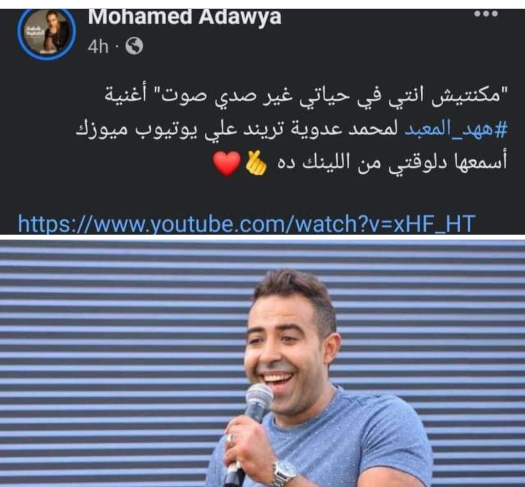 وكتب محمد عدوية:“ماكنتش أنتي في حياتي غير صدى صوت، أغنية ههد المعبد لمحمد عدوية، تريند على يوتيوب”.