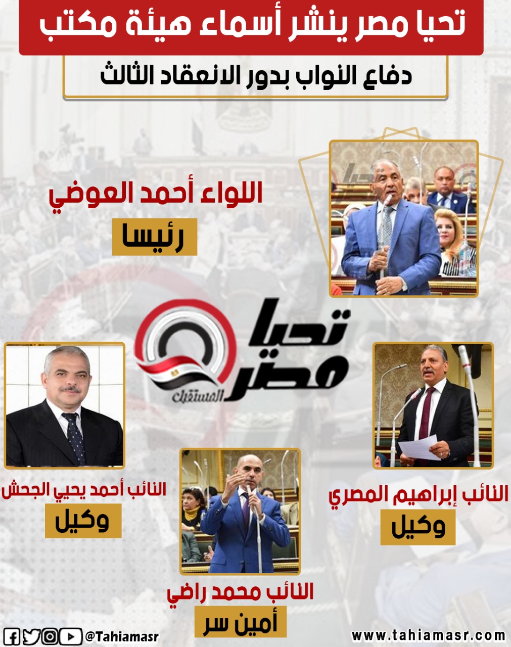 « أحمد العوضي رئيسا».. تحيا مصر ينشر تشكيل هيئة مكتب دفاع النواب بدور الانعقاد الثالث