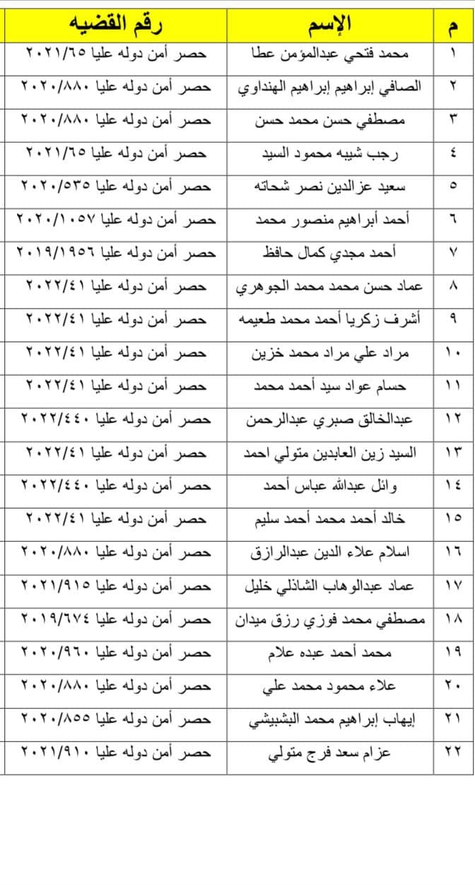 وجاءت أسماء المفرج عنهم كالتالي: