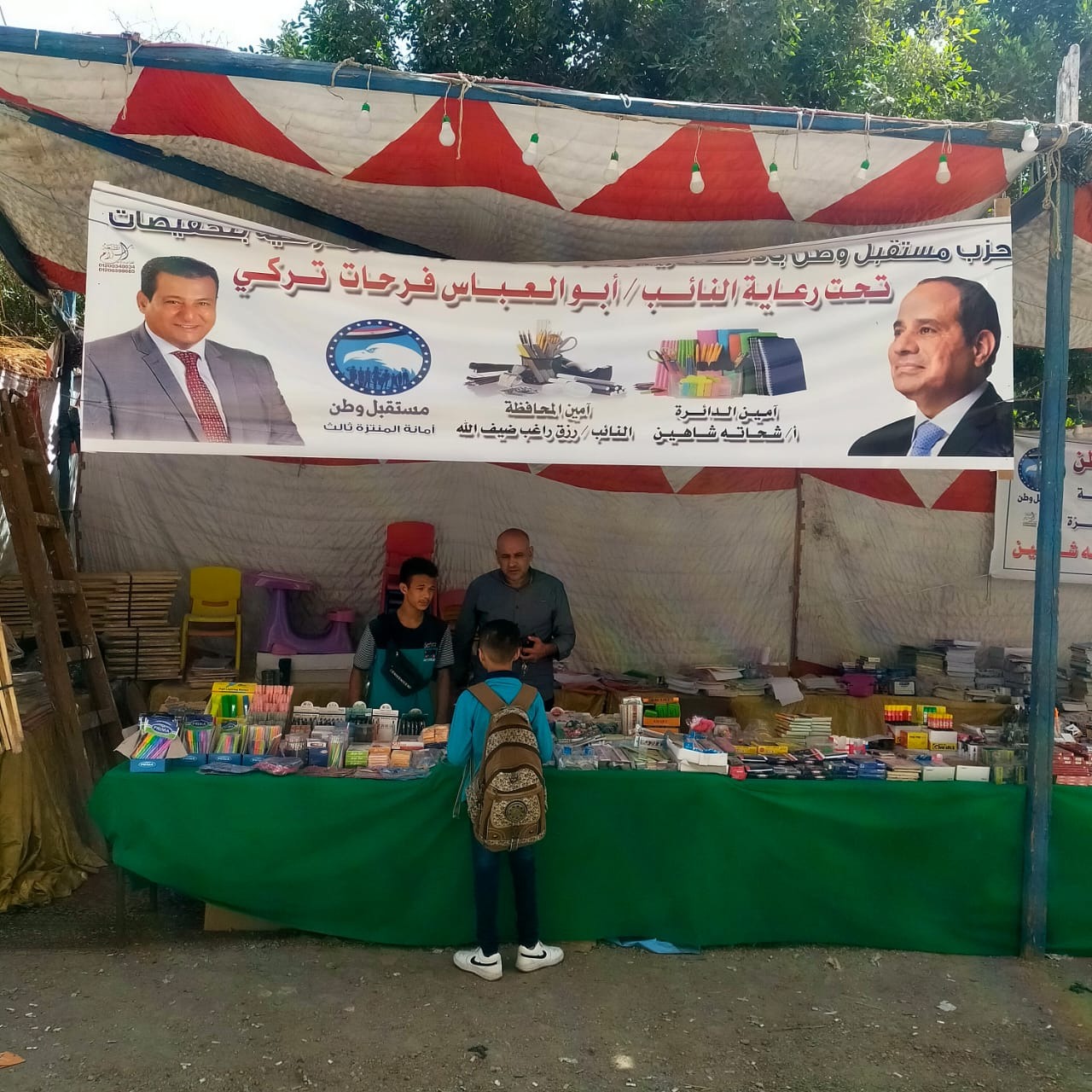 وفي محافظة الجيزة،وزعت أمانة قسم الطالبية، هدية الرئيس على تلاميذ المدارس الابتدائية احتفالاً ببدء العام الدراسي الجديد وتتضمنت الهدايا مجموعة متكاملة من المستلزمات المدرسية، وفي الوقت ذاته افتتحت أمانة الحزب معرضاً بمنطقة الكونيسة لبيع حلوى المولد النبوي الشريف بأسعار مخفضة تخفيفاً عن الأهالي.