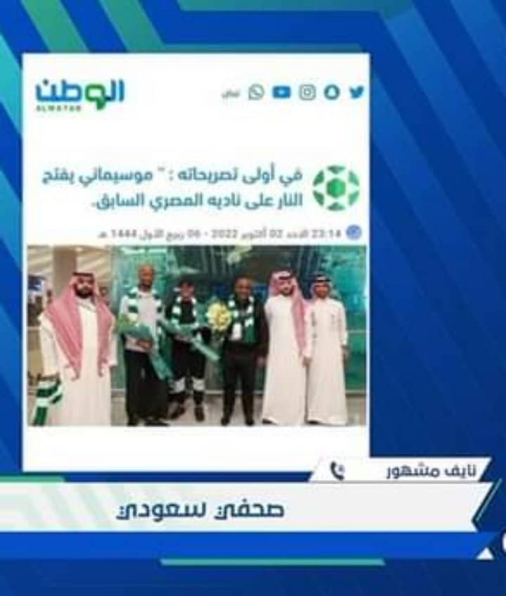 وقال عبدالله المعيوف الصحفي السعودي في حديثه الخاص لـ تحيا مصر: " موسيماني لم يُلدلي بمثل هذه التصريحات، كل ما قاله أنه أعاد الفريق للتويج بالبطولات الإفريقية من جديد والتي كان غائباً عنها لفترة كبيرة من الزمن".