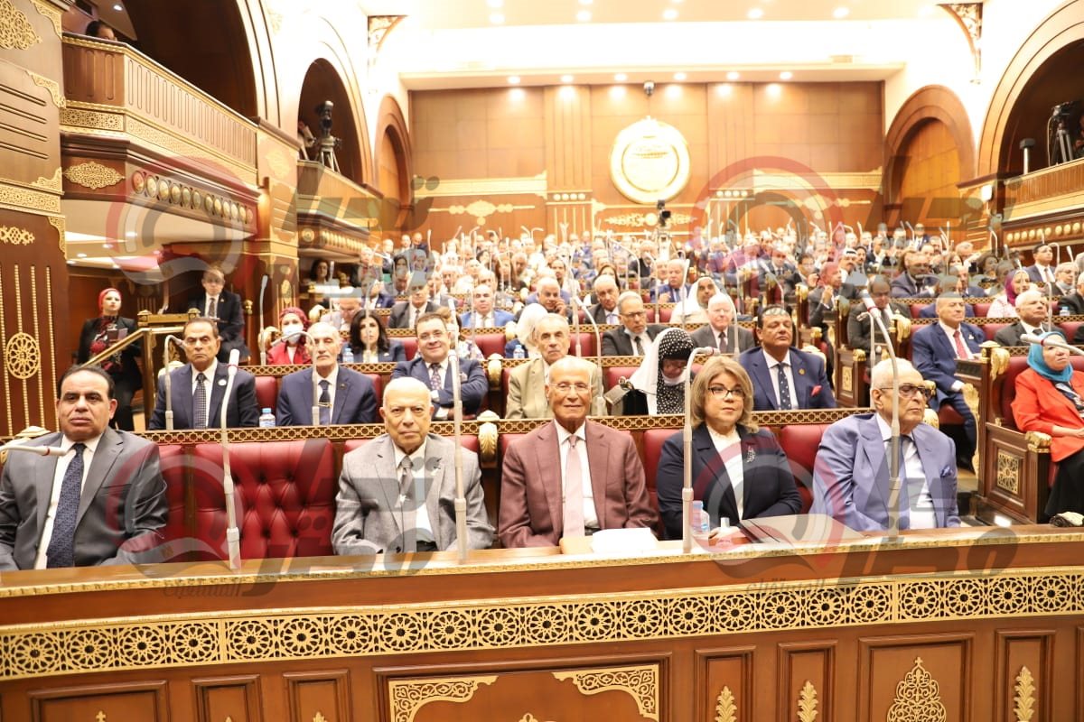 وواصل حديثه:"ونحن نفتتح دور الانعقاد الثالث... لدى أمل في الله عز وجل... وثقة في قيادتنا السياسية ... فخامة الرئيس عبدالفتاح السيسي... أن يتجاوز بمصر هذه المرحلة الحرجة ... التي يمر بها العالم ... الذي لا يكاد يخرج من جائحة كورونا ... وتداعياتها على الاقتصاد ... ليدخل في كارثة اقتصادية أشد وطأة ... وأكثر وبالاً على العالم كافة ... وعلى وجه الخصوص الدول النامية... وهى الحرب الروسية الأوكرانية ... وتعلمون أن مصر غير بعيدة عن تداعياتها ... التي خفف من قسوتها إلهام المولى عز وجل ... للسيد الرئيس ... بالمشروعات العملاقة التي بدأها ... منذ توليه المسؤولية ... من مصانع جديدة أنشئت ... ومصانع قديمة طورت... ومصانع مُعطلة شُغلت... ومزارع سمكية عملاقة دُشنت ... وأنتجت ... وملايين أفدنة من الصحاري استصلحت ... بأحدث أساليب العلم الحديث واستزرعت ... وآتت أُكلها ... بعد أن أثمرت ... وصوامع لتخزين الغلال ... لسد احتياجات البلاد لأطول مدة ممكنة ... شيدت.