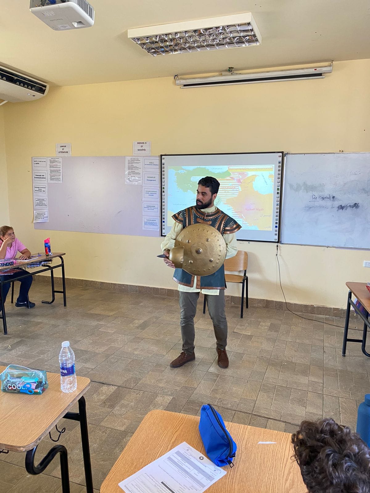 مدرس يمثل مشهدا تاريخيا لتيسير المعلومات على الطلاب