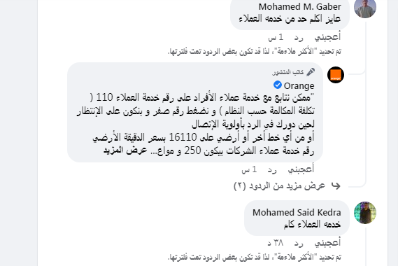 عميل شركة اورنج orange يعلق: عايز أكلم حد من خدمة العملاء يرد
