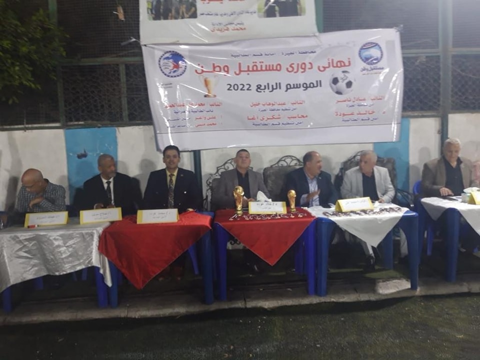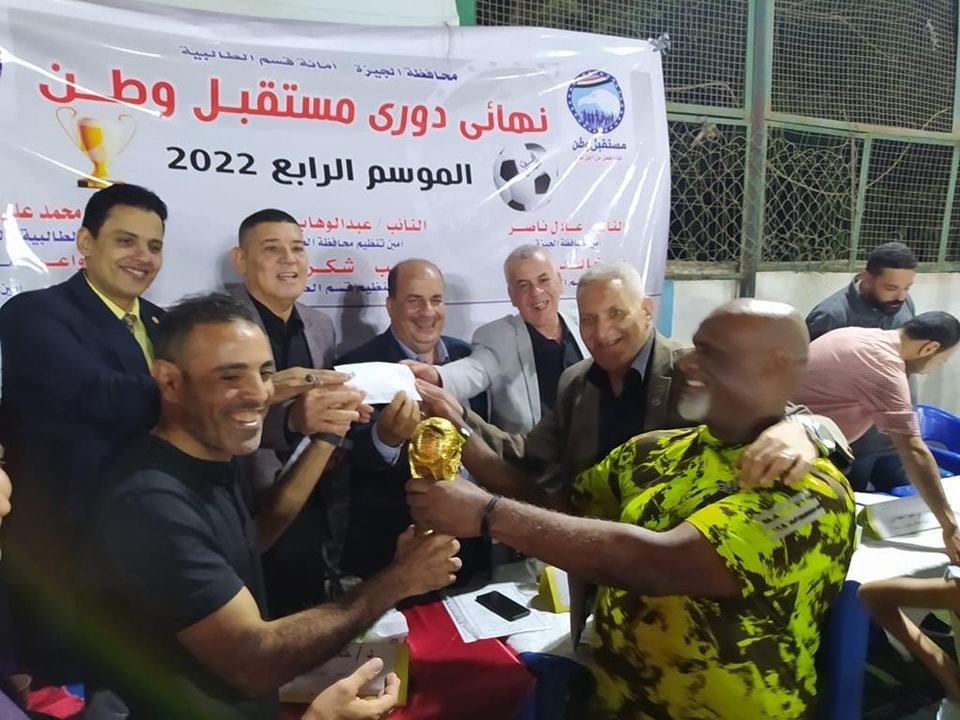 شهدت منطقة الطالبية، ختام بطولة الدور الأول لمسابقة دوري مستقبل وطن، في نسختها الرابعة تحت شعار "الرياضة للجميع - انت البطل"، بتتويج فريق القطار الكهربائي لبطولة، بعد تغلبه في المباراة النهائية على حساب فريق المناخ بسباعية نظيفة، وذلك ضمن فاعليات بطولة الدوري على مستوى مراكز وأقسام محافظة الجيزة، قبل بدء الدور الثاني على مستوى المحافظة وتختتم المسابقة بإقامة الدور الثالث والأخير على مستوى الجمهورية.