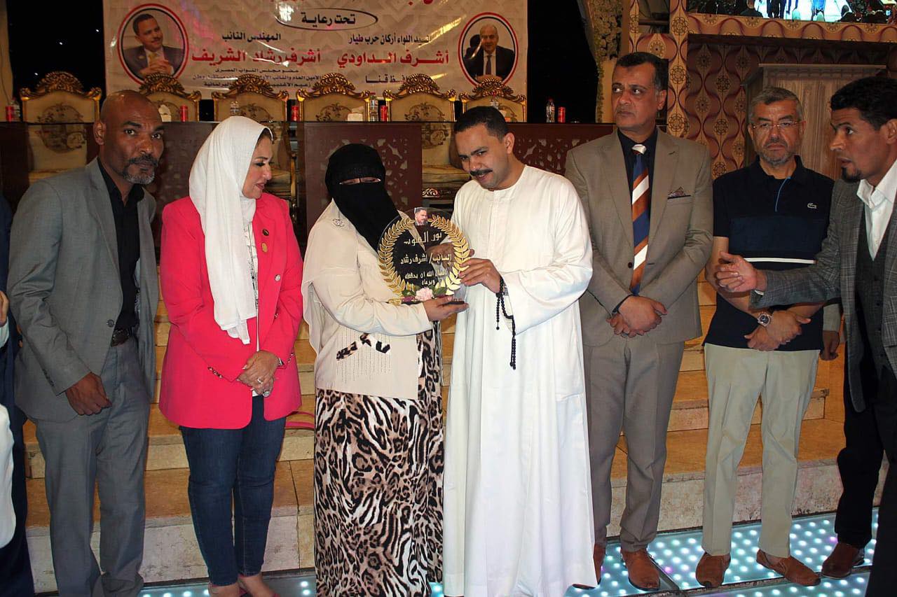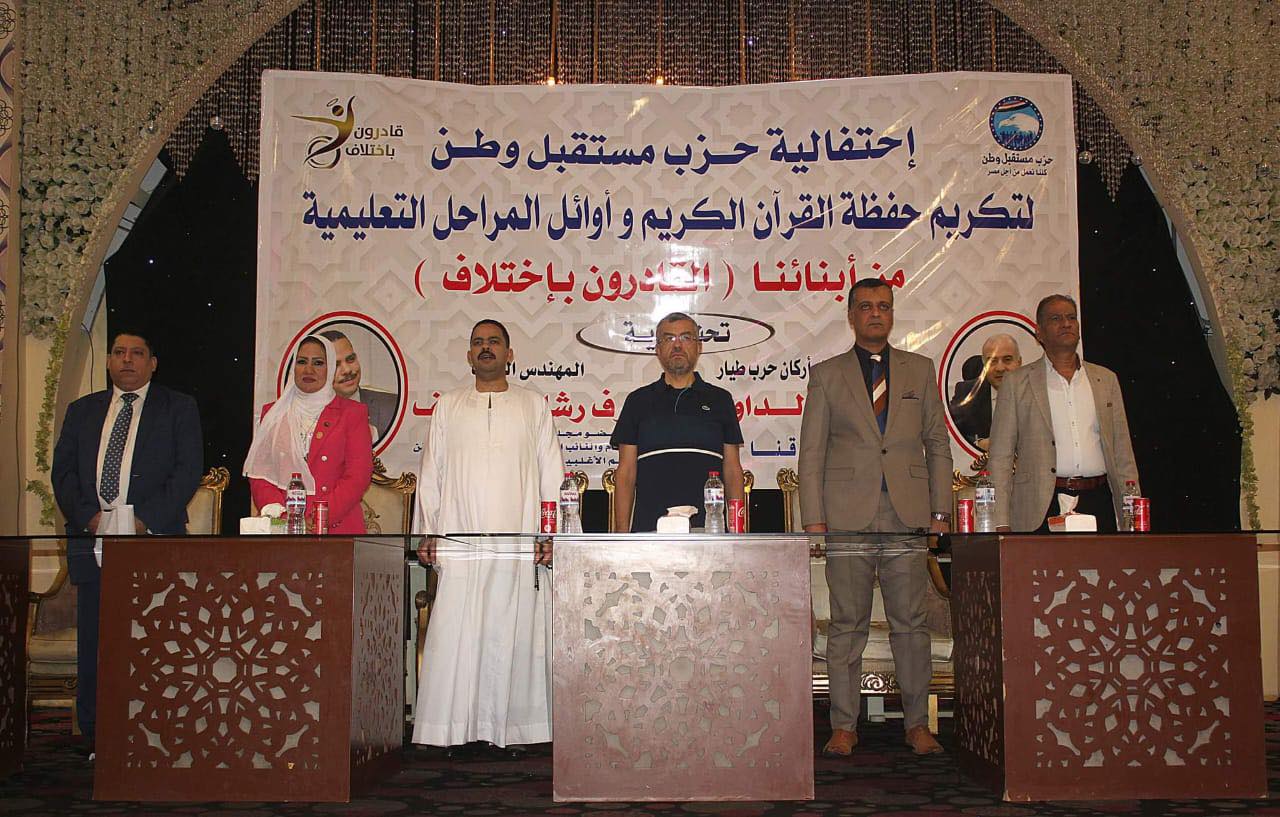 جاء ذلك خلال الاحتفالية التي نظمها حزب مستقبل وطن، بحضور النائب عماد حمودة نائب رئيس الحزب، والنائبة سحر صدقي رئيسة الكتلة البرلمانية بقنا، د. محمد السيد وكيل وزارة التعليم بقنا.