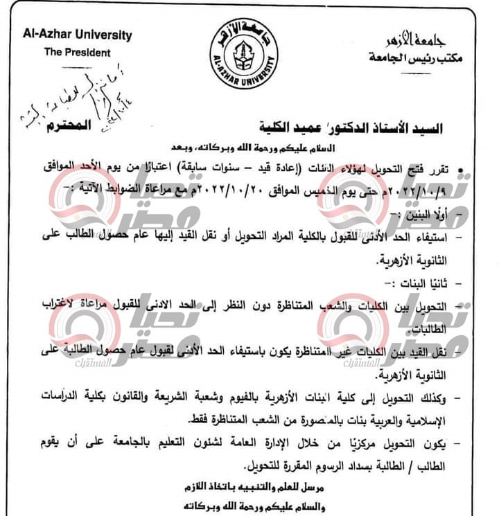 يبدأ خلال ساعات.. ننشر طريقة وكيفية تقليل الاغتراب بـ جامعة الأزهر