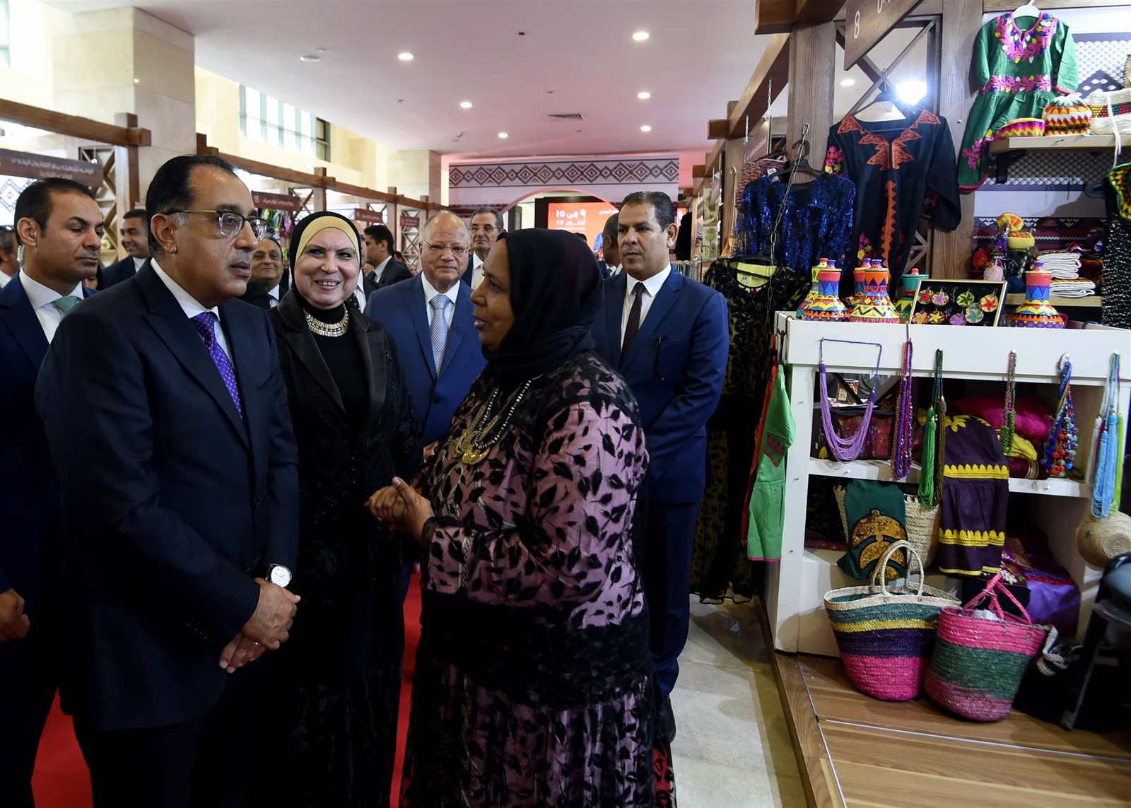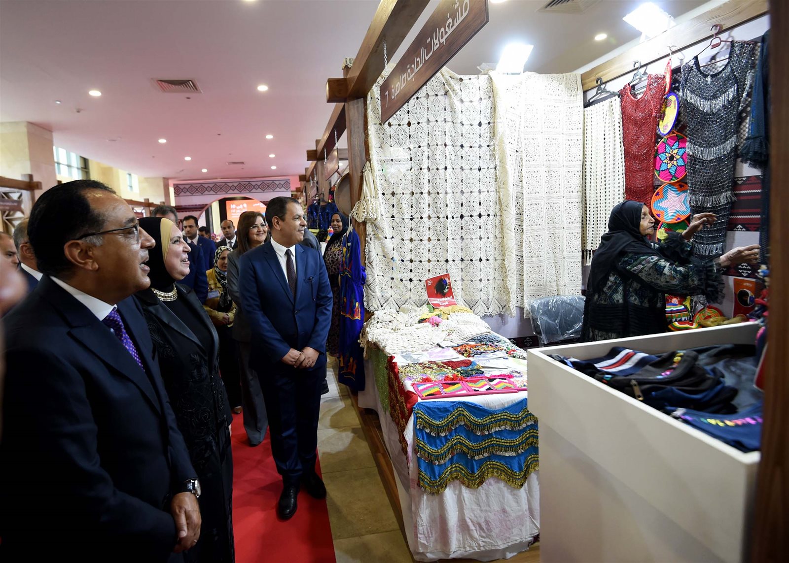 وقام الدكتور مصطفى مدبولي، ومرافقوه بجولة في أرجاء المعرض شملت جناح المملكة العربية السعودية، ضيف شرف المعرض، وكذا أجنحة كل من الإمارات العربية المتحدة، والمملكة الأردنية الهاشمية، والسودان، وليبيا، حيث التقي رئيس الوزراء بعدد من العارضين من الدول الشقيقة، مؤكداً حرص الدولة المصرية على مشاركة العديد من الدول العربية في هذا المعرض، لعرض مختلف المنتجات اليدوية والتراثية التى تعبر عن الحضارات الثقافية والفولكلورية لهذه البلدان الشقيقة من الفنون الإبداعية المتميزة والمتفردة، التي تعكس الهوية العربية وحجم التنوع بين الشعوب والثقافات، منوهاً إلى أن ذلك يأتي فى إطار دعم وتعزيز أوجه التعاون فى مختلف المجالات والقطاعات، وخاصة الثقافية منها، مشيداً بالمستوى الابداعي والفني للمنتجات والأعمال المعروضة، لافتا إلى أن هذا المعرض من شأنه أن يسهم فى اتاحة فرصة تسويقية كبيرة لمنتجات أصحاب المشروعات الصغيرة في هذه الدول.