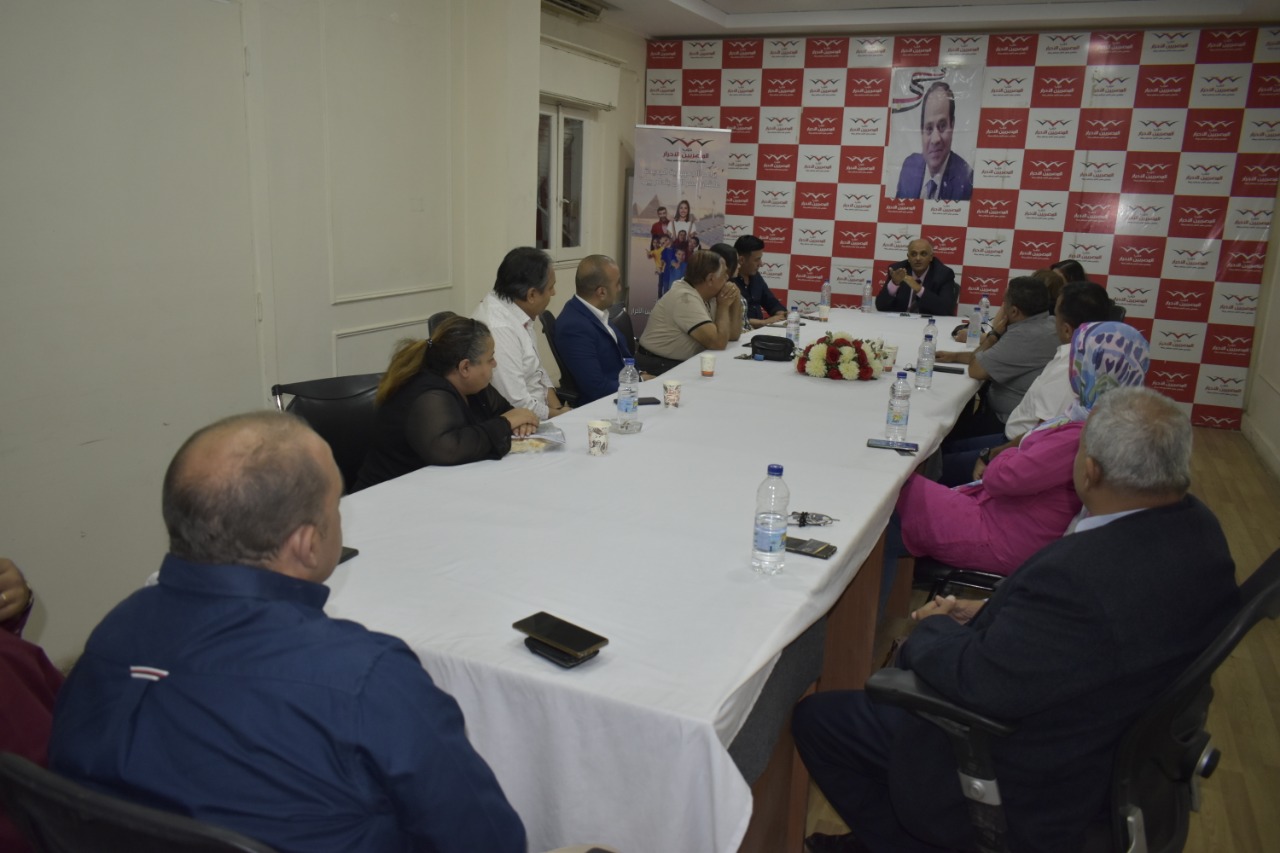 وناقش الاجتماع في محاور الترتيب الملتقى التوظيفي الدائم بالحزب والتجهيزات الملتقى المزمع انعقاده خلال شهر نوفمبر المقبل، وايضا آليات التواصل مع ممثلي اللجنة بالمحافظات والانتشار بين المواطنين لتقديم افضل صورة للخدمات علي الصعيد الصحي والاجتماعي، وتعزيز الدور التقني في التواصل لتيسير السبيل لخدمة المواطن.