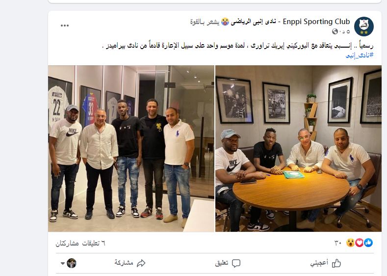 وأعلنت الصفحة الرسمية لفريق إنبي عن التعاقد مع إيريك تراوري حيث نشرت : “رسمياً إنـبى يتعاقد مع البوركيني إيريك تراورى ، لمدة موسم واحد على سبيل الإعارة قادماً من نادى بيراميدز”.