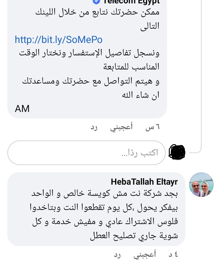 علقت إحدى عملاء المصرية للاتصالات we عبر صفحة الشركة الرسمية على موقع "فيسبوك"، "بجد شركة نت مش كويسة خالص والواحد بيفكر يحول".