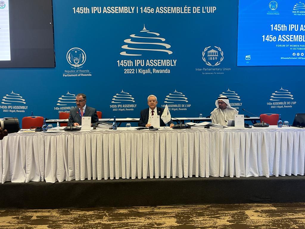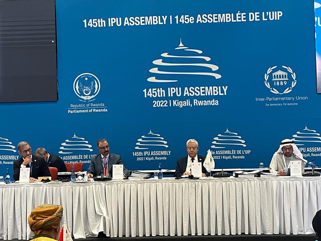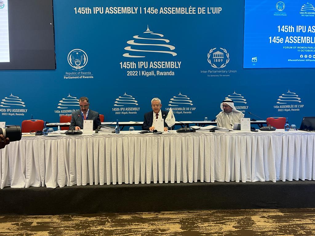 جاء ذلك قبيل انطلاق أعمال الجمعية ١٤٥ للاتحاد البرلماني الدولي والمنعقدة بالعاصمة الرواندية كيجالي خلال الفترة من ١١ - ١٥ أكتوبر ٢٠٢٢، حيث ترأس المستشار الدكتور حنفي جبالي رئيس مجلس النواب أعمال الاجتماع التنسيقي التشاوري للمجموعة البرلمانية العربية بالاتحاد البرلماني الدولي بمشاركة دوارتي باتشيكو رئيس الاتحاد البرلماني الدولي، وخلال الاجتماع، تناولت الوفود البرلمانية العربية المشاركة في اجتماعات الجمعية ١٤٥ للاتحاد البرلماني الدولي سُبل تنسيق الرؤى والمواقف العربية تجاه القضايا المطروحة على اجندة اجتماعات الاتحاد البرلماني الدولي، كما تم خلال الاجتماع بحث طرق توحيد الجهود العربية من أجل دعم مرشحي المجموعة العربية لشغل المناصب الشاغرة بأجهزة ولجان الاتحاد البرلماني الدولي لضمان التمثيل العربي القوي والمؤثر بتلك الاجهزة واللجان لدعم القضايا العربية.