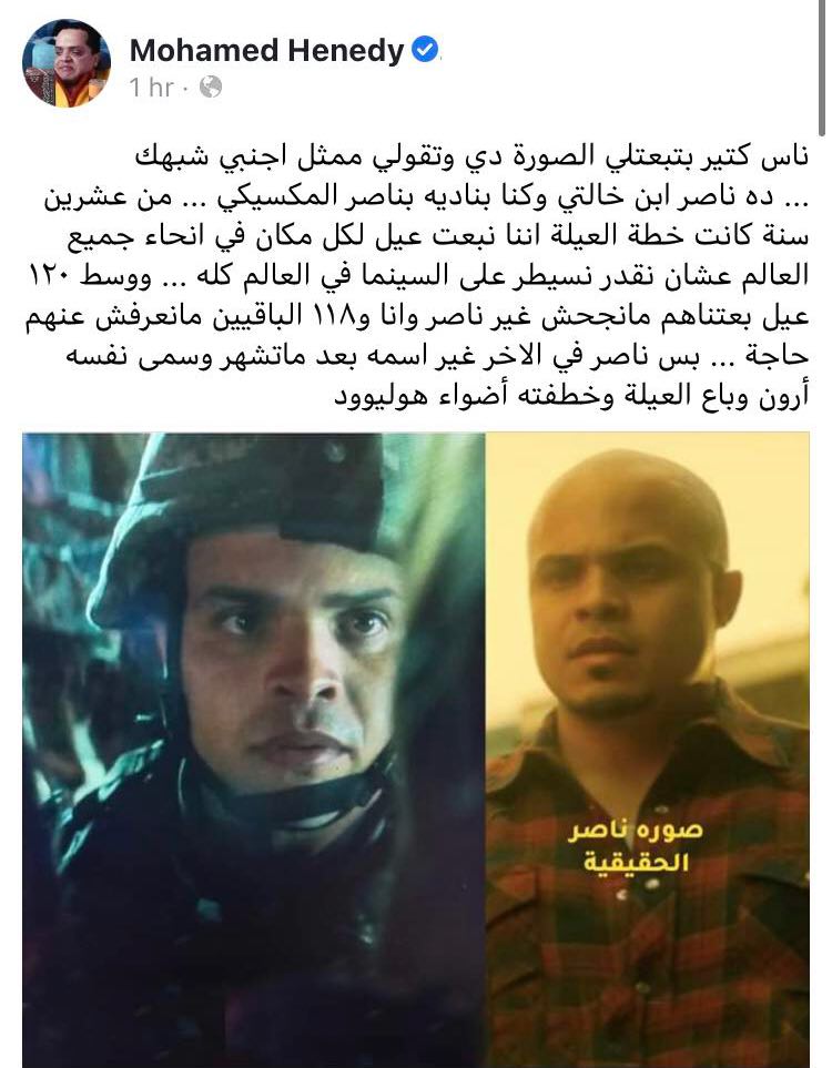 ونشر محمد هنيدي صورة لشبيهه على فيسبوك، وعلق: ناس كتير بتبعتلي الصورة دي وتقولي ممثل اجنبي شبهك.. ده ناصر ابن خالتي وكنا بناديه بناصر المكسيكي.