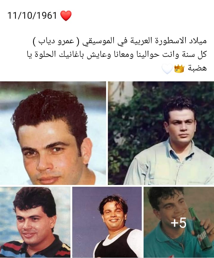 واحتفل أحدهم بنشر مجموعة صور للهضبة من بداية دخوله الوسط الفني حتى تألقه في تلك الفترة، وذلك عبر حسابه الرسمي بموقع التواصل الإجتماعي “فيسبوك"، وعلق عليها، قائلا: “ميلاد الاسطورة العربية في الموسيقي ( عمرو دياب )، كل سنة وانت حوالينا ومعانا وعايش باغانيك الحلوة يا هضبة”.