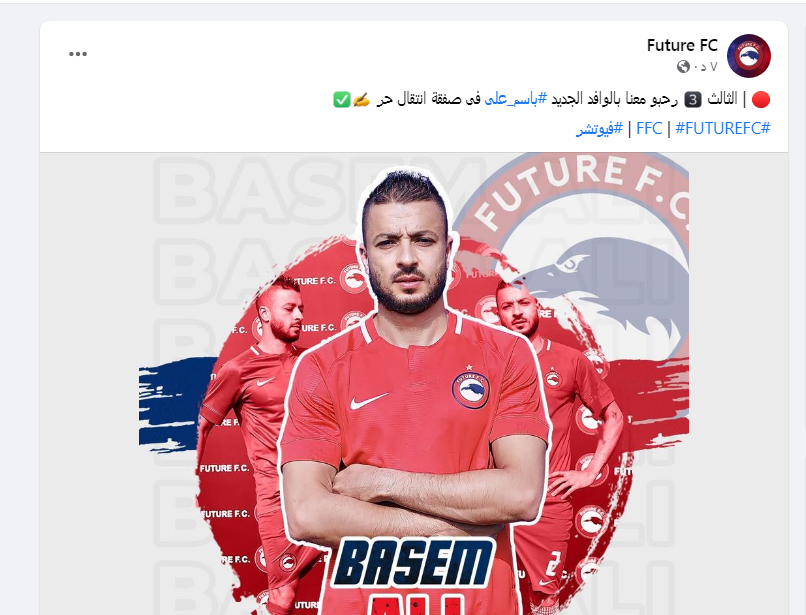 وأتم: “ الثالث، رحبو معنا بالوافد الجديد باسم على فى صفقة انتقال حر”.