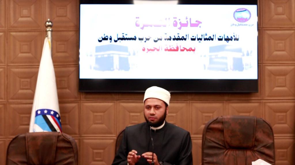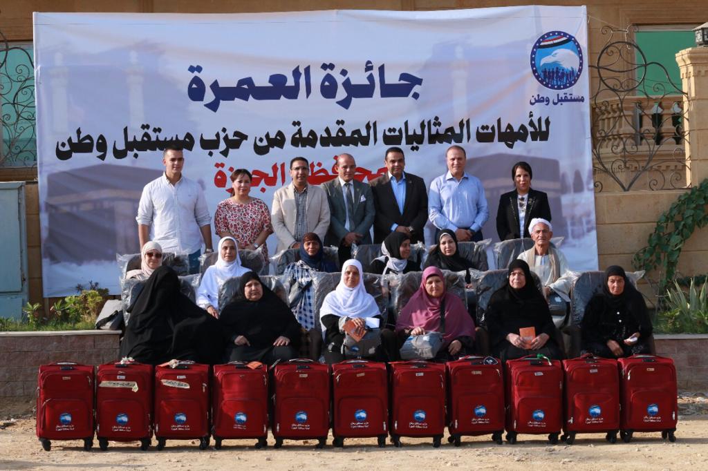 جاء ذلك بعد إعلان أمانة حزب مستقبل وطن خلال احتفالها بعيد الأم الماضي عن منح جائزة العمرة للأمهات المثاليات على مستوى المحافظة وهي الرحلات التي تبرع بكامل تكلفتها كلاً من النائبة الدكتورة صبورة السيد عضو مجلس النواب الأمين المساعد للحزب بالمحافظة والنائب نادر الخبيري عضو مجلس النواب الأمين المساعد للحزب بالجيزة والنائب عمرو القطامي عضو مجلس النواب أمين المجالس المحلية بالمحافظة والنائب محمود توشكى والنائب زكي عباس عضوا مجلس النواب وأميرة عبيد أمين مساعد المرأة بالمحافظة.