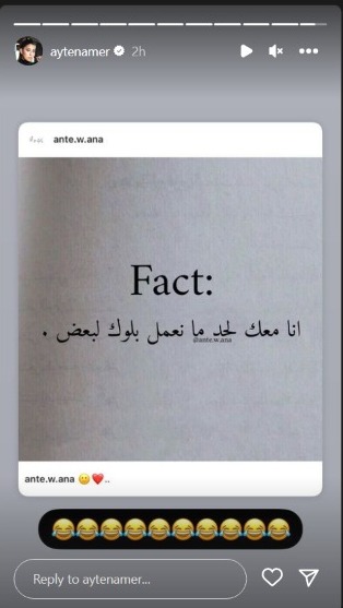 شاركت الفنانة أيتن عامر عبر خاصية ستوري بحسابها الرسمي على موقع تبادل الصور والفيديوهات الشهير انستجرام، مقولة أثارت تساؤلات الجمهور.