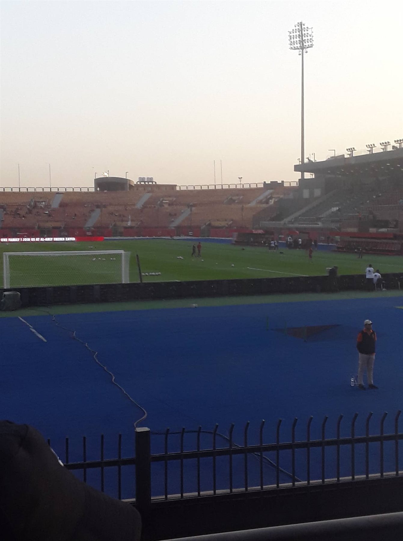 لاعبو الأهلي يتفقدون أرضية ملعب ستاد السلام قبل مواجهة الاتحاد المنستيري (صور)