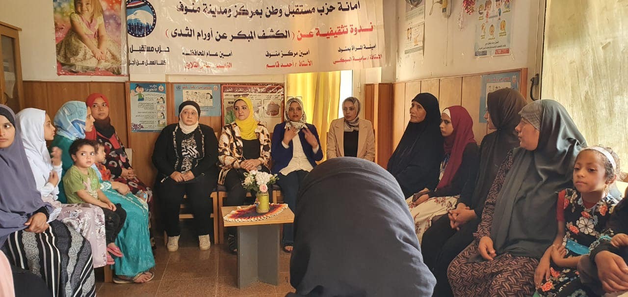 كما نظمت أمانة مدينة منوف، ندوة تثقيفية، تحت عنوان "أهمية الكشف المبكر عن سرطان الثدي"، في قرية دبركي، وشهدت حضورا جماهيريا مكثفا.