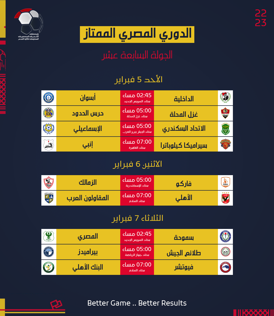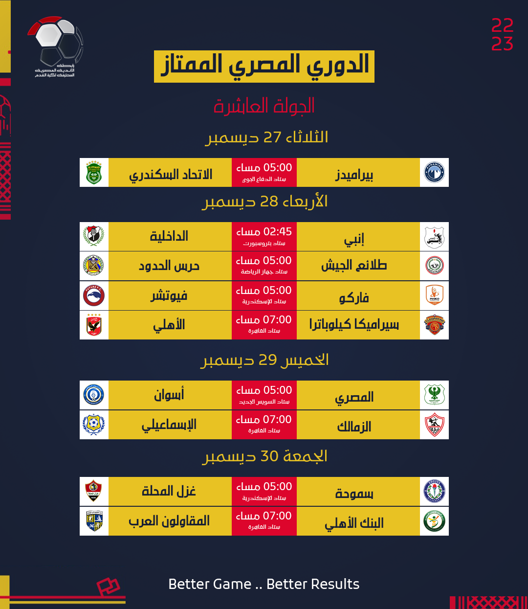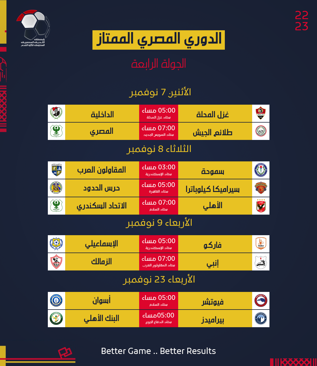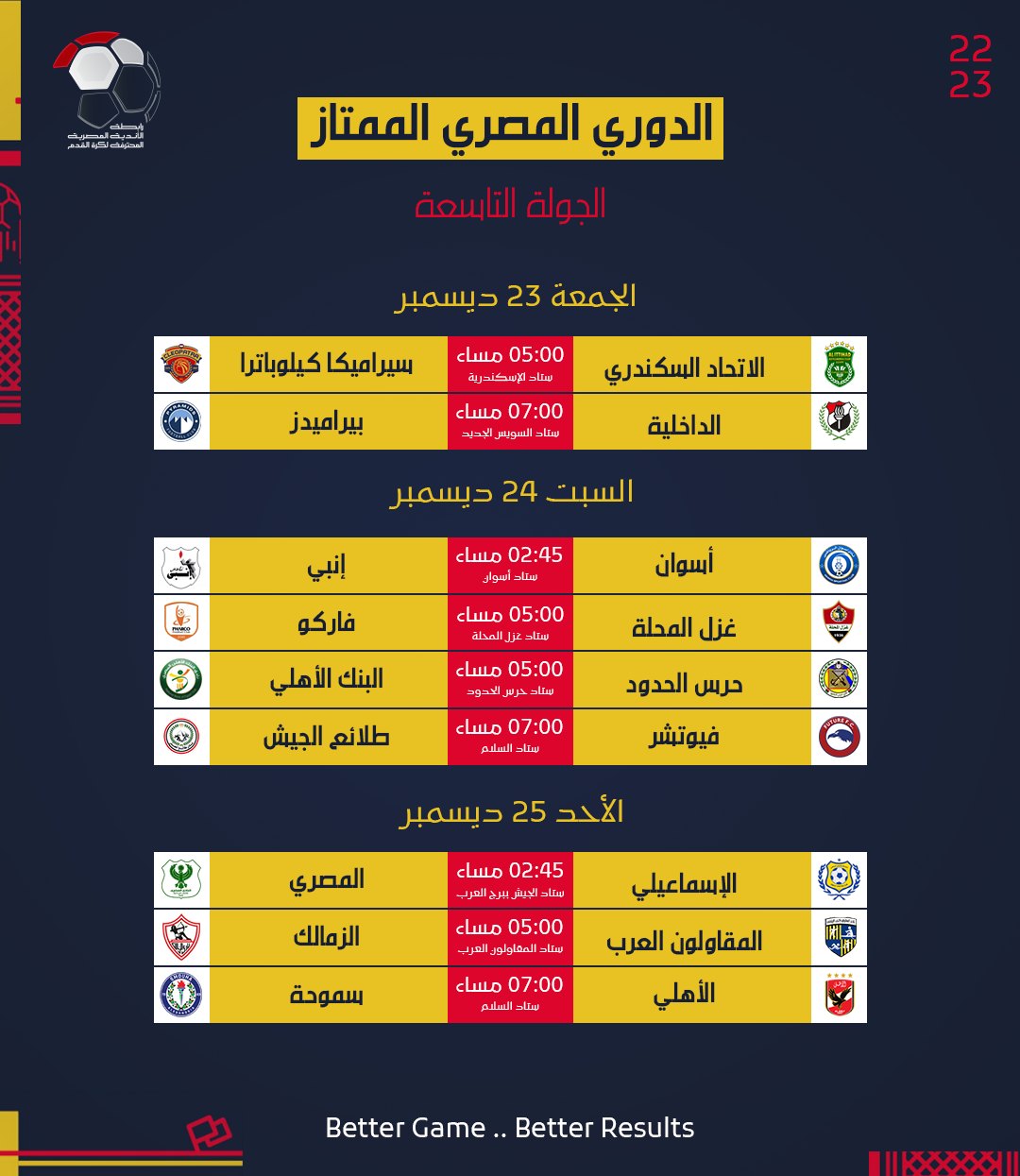أعلنت رابطة الأندية المصرية المحترفة لكرة القدم، جدول مواعيد مباريات الدور الأول والثاني من مسابقة الدوري للموسم الجديد 2022/ 2023.