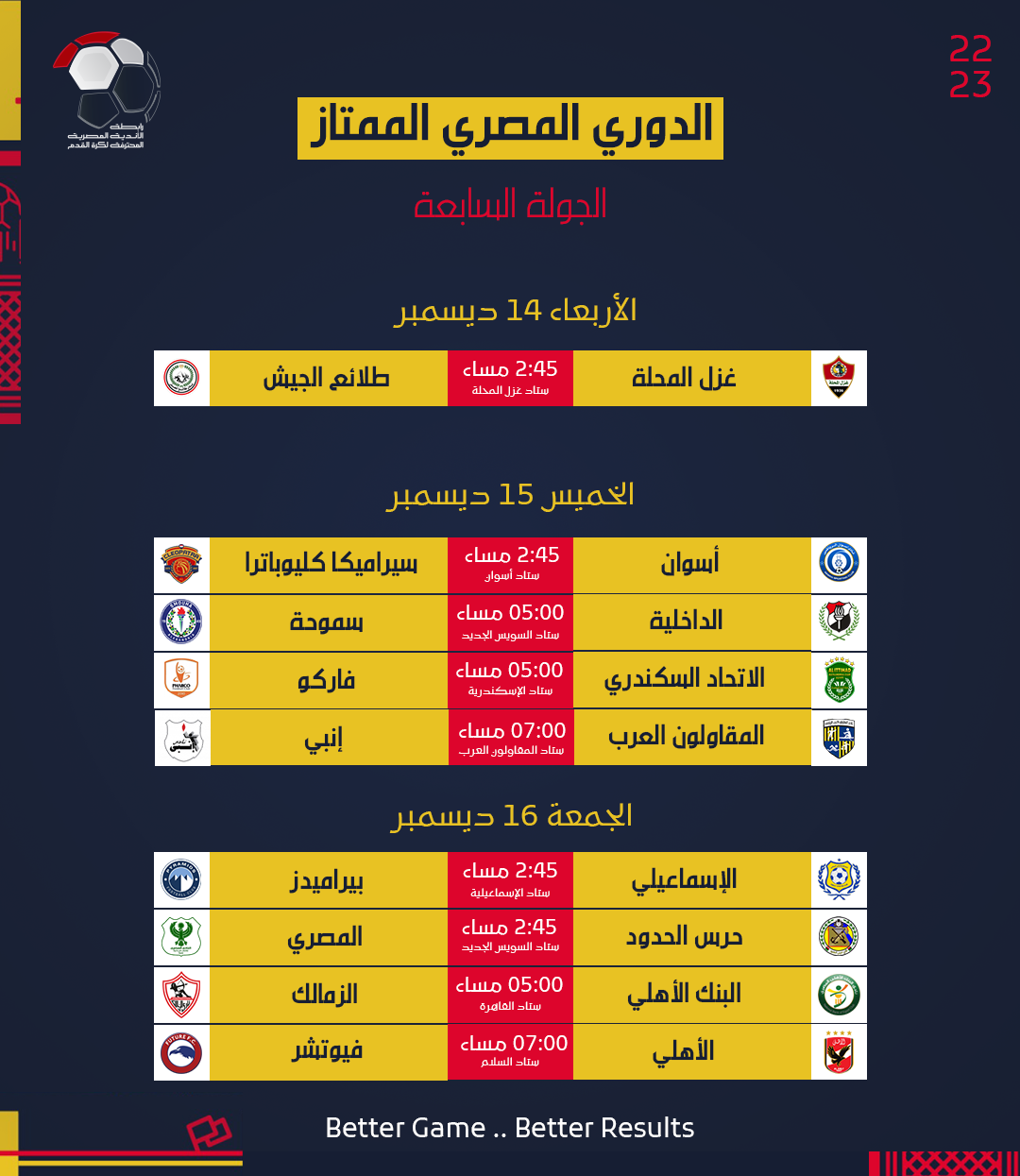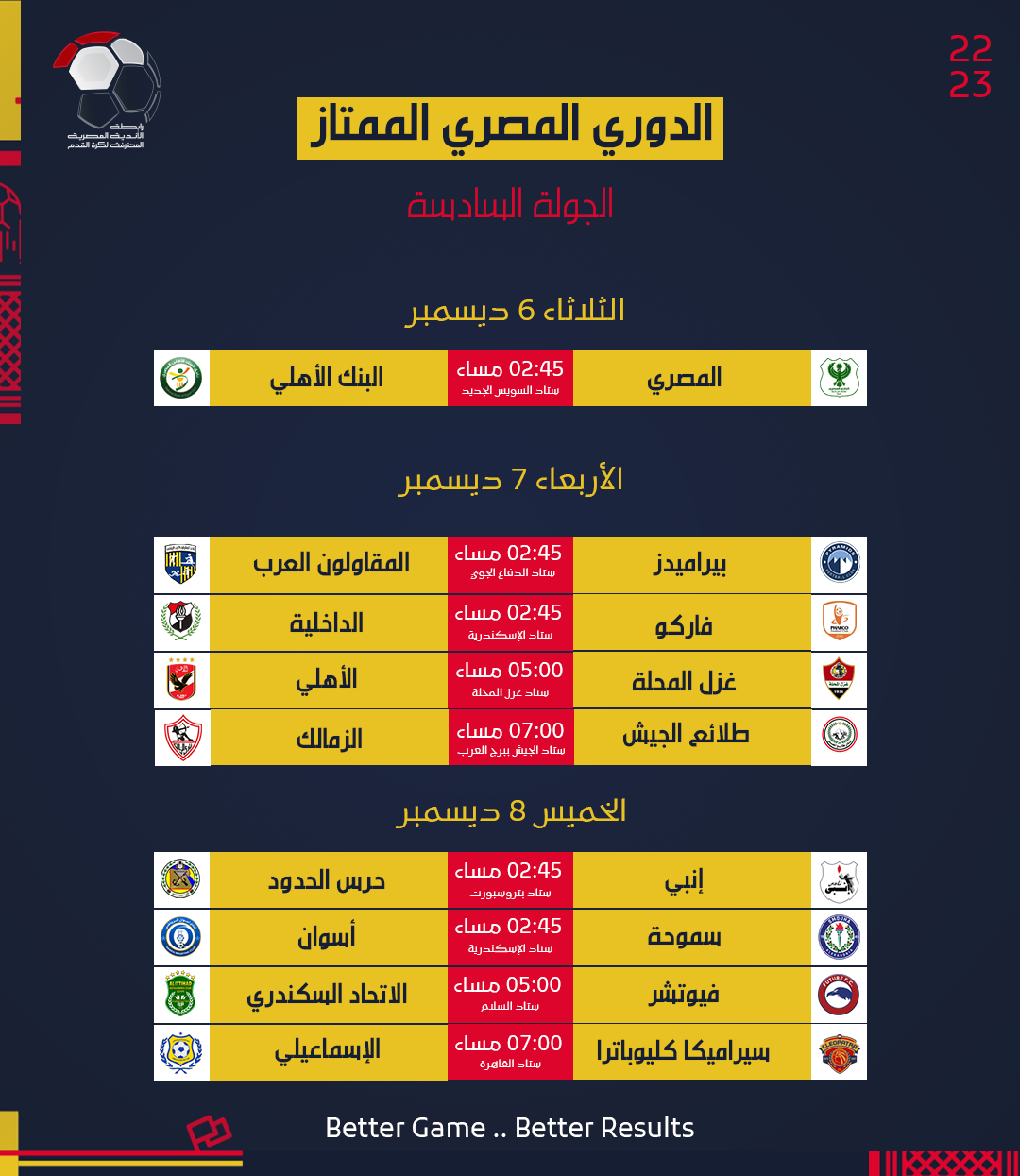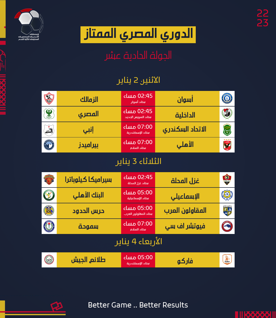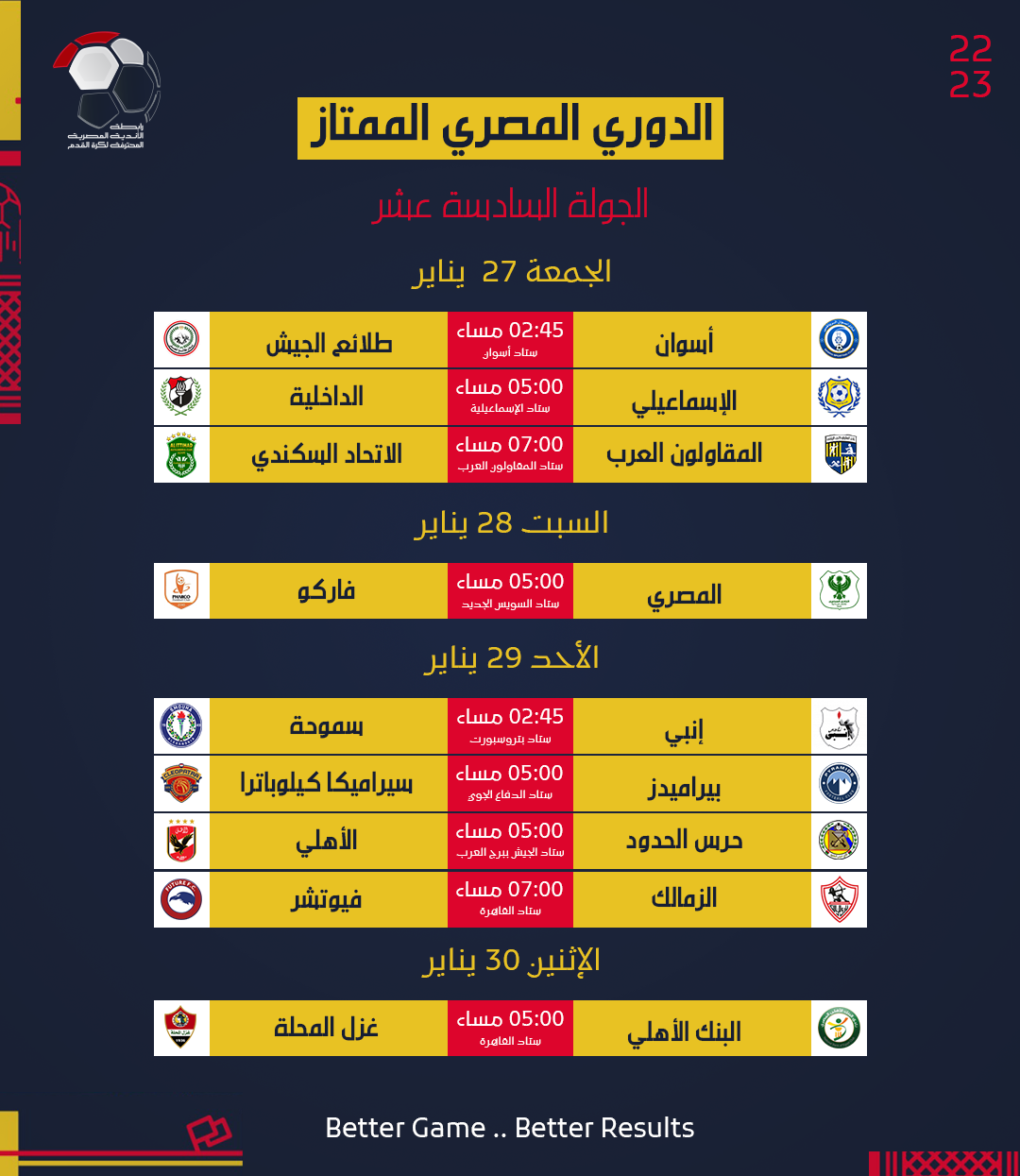 أعلنت رابطة الأندية المصرية المحترفة لكرة القدم، جدول مواعيد مباريات الدور الأول والثاني من مسابقة الدوري للموسم الجديد 2022/ 2023.