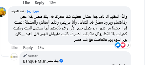 عميل بنك مصر يعلق: "ندمان إنى حطيت شقى عمري معاكوا"