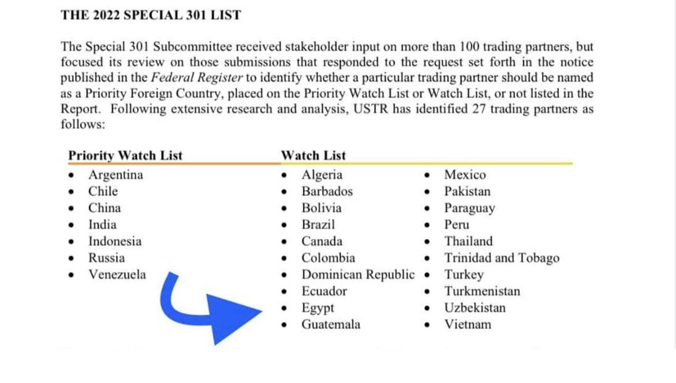 • ماذا تم من خطوات لمطالبة الممثل التجاري الامريكي التدقيق في المراجعة السنوية لسياسات وممارسات الملكية الفكرية بمصر واطلاعه على مستجدات المشهد؟.