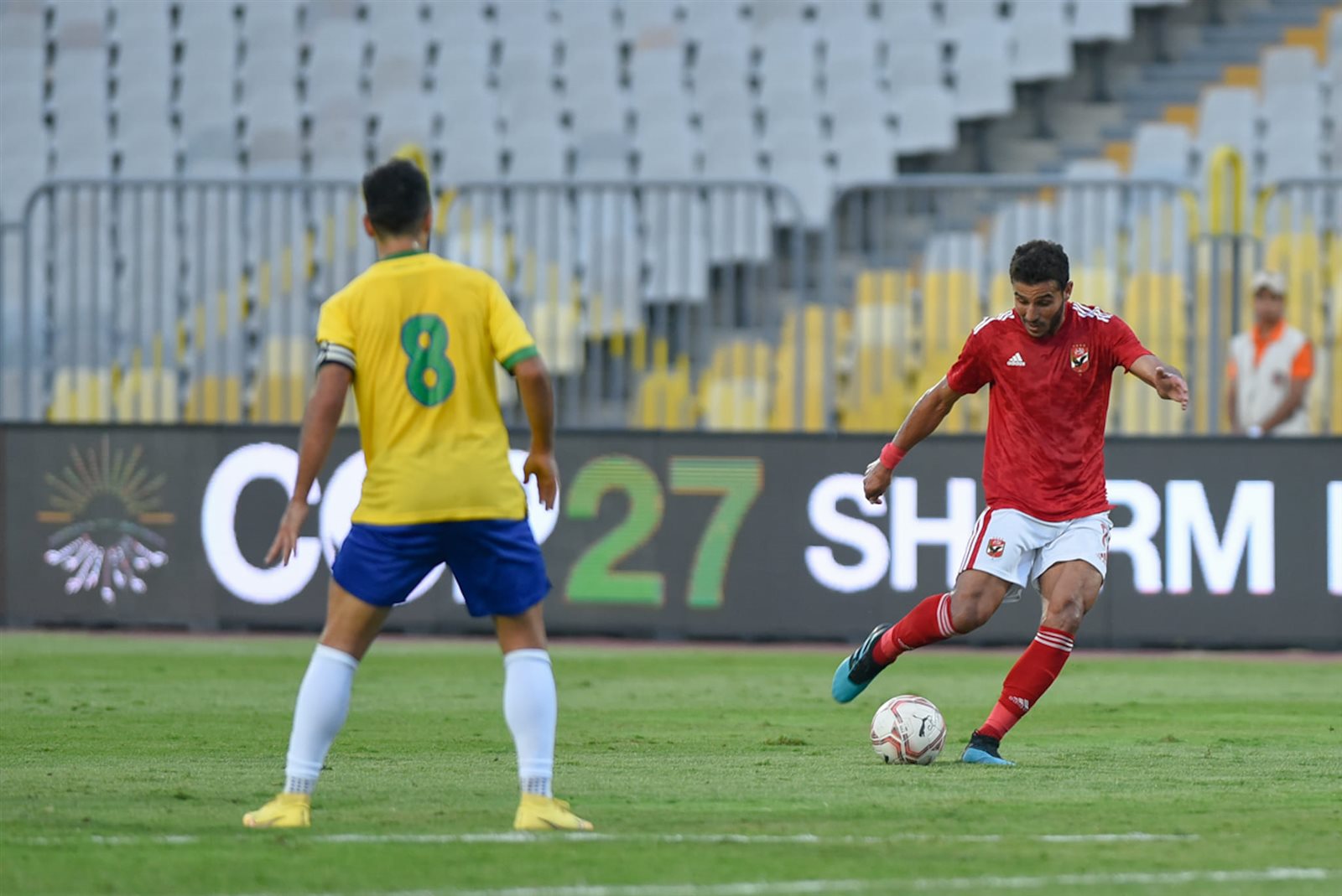 وفي الدقيقة 26 من عمر المباراة، ركلة ركنية لصالح فريق الأهلي من جهة اليمين نفذها علي معلول عن طريق كرة عرضية إلى داخل منطقة الجزاء قابلها محمد عبد المنعم برأسية مرت بعيدة عن المرمى.