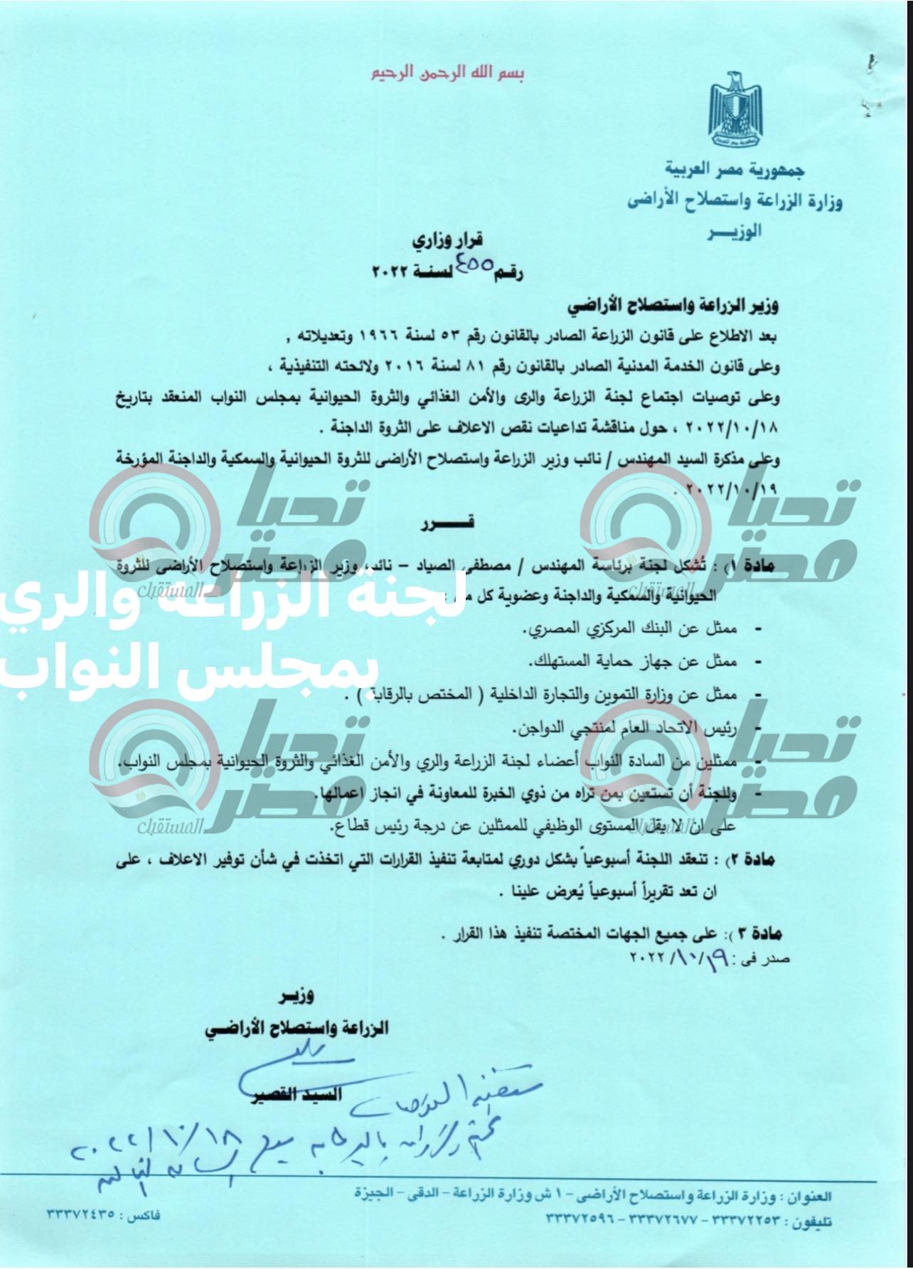 تنفيذًا لتوصيات زراعة البرلمان.. رسميًا..تشكيل لجنة حكومية بشأن أزمة الأعلاف والدواجن «مستند»