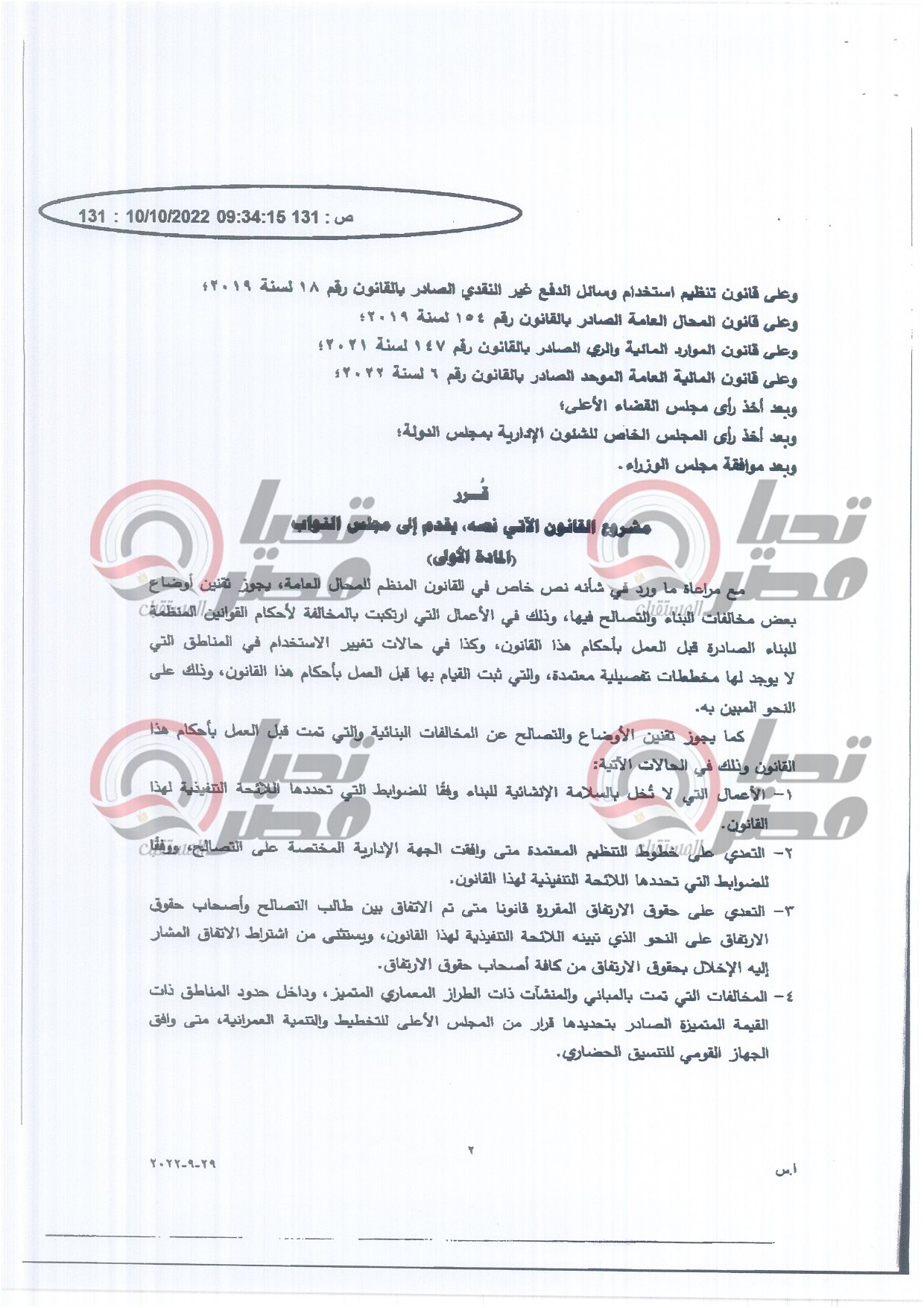 تحيا مصر انفرد بمشروع القانون بعد موافقة الحكومة، ويستعرض أبرز المعلومات الجديدة التى شملها وتمثل إضافة فى مواجهة إشكاليات المرحلة الماضية.