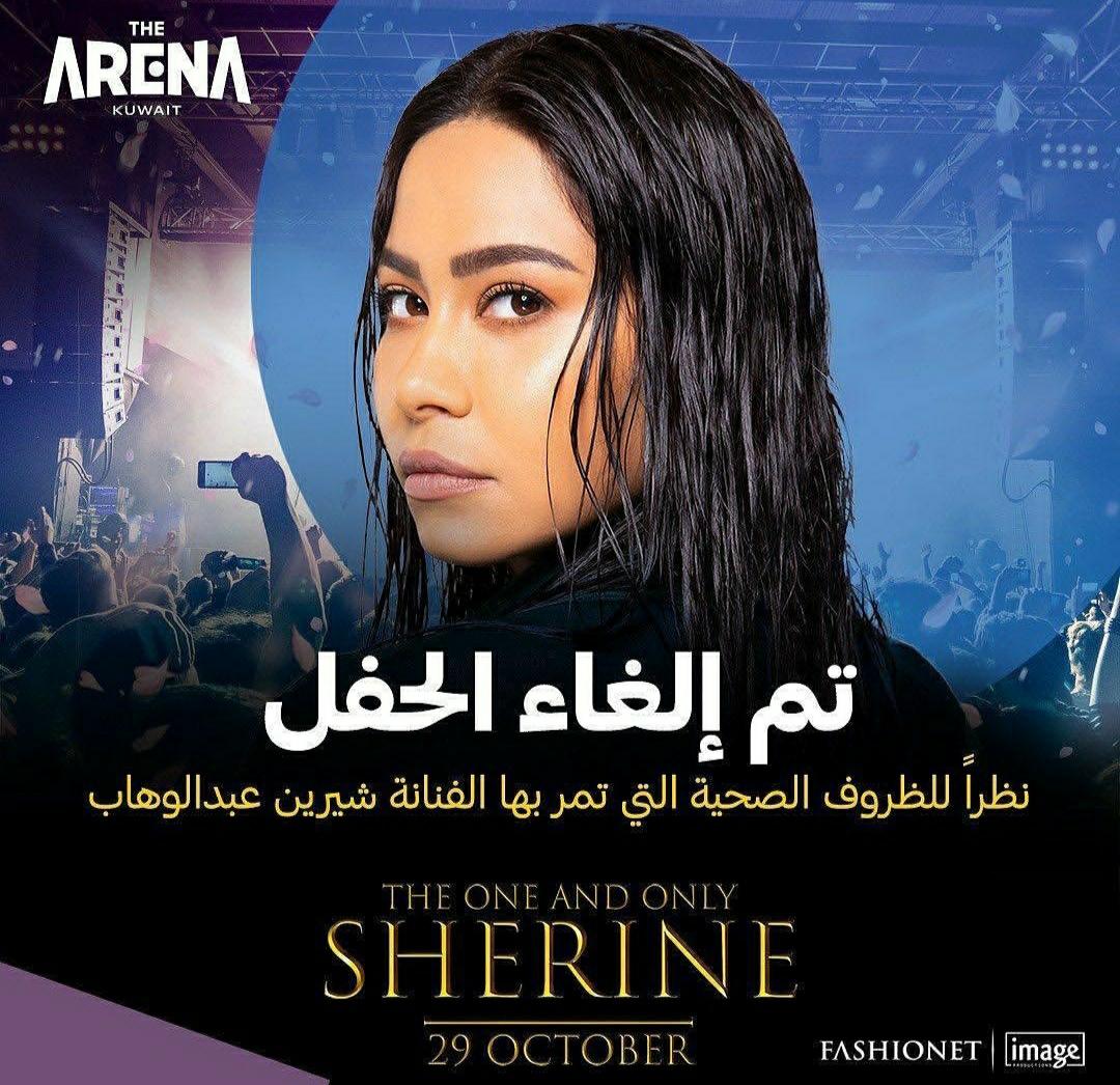 قررت الشركة المنظمة لحفل الفنانة شيرين عبد الوهاب بالكويت إلغاء فعاليات الحفل التي كان من المقرر إقامته يوم 29 من شهر أكتوبر الجاري بأرينا الكويت، نظرًا للظروف الصحية التي تمر بها الفنانة في الفترة الأخيرة.