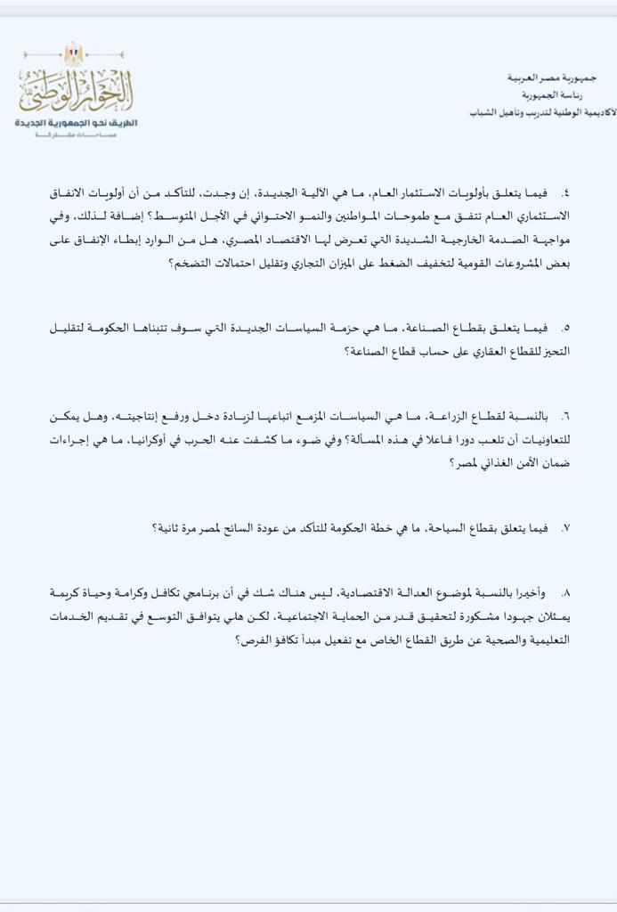 أسئلة الحوار الوطني لطرححها في المؤتمر الاقتصادي