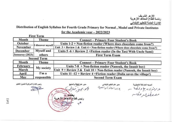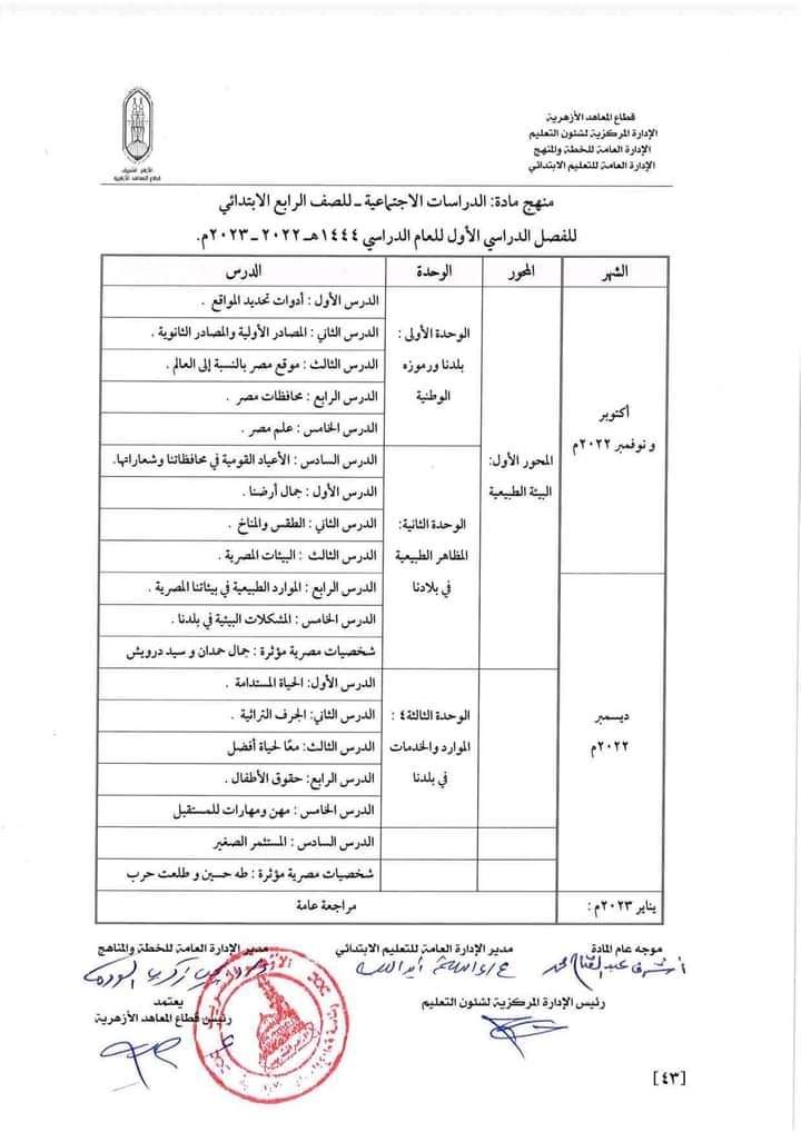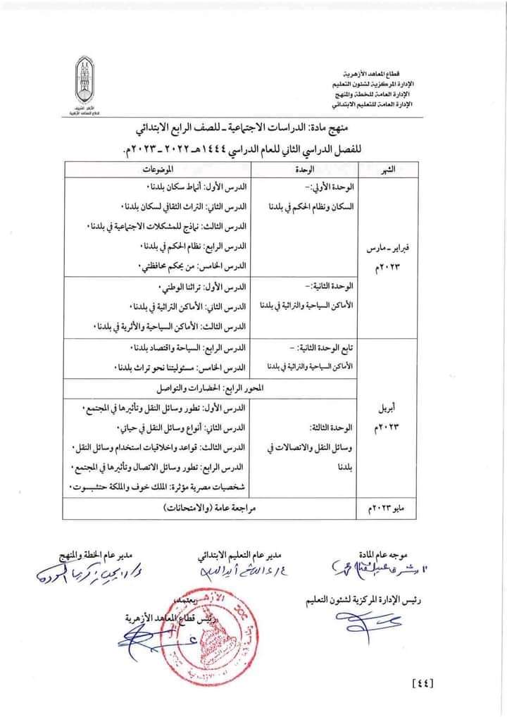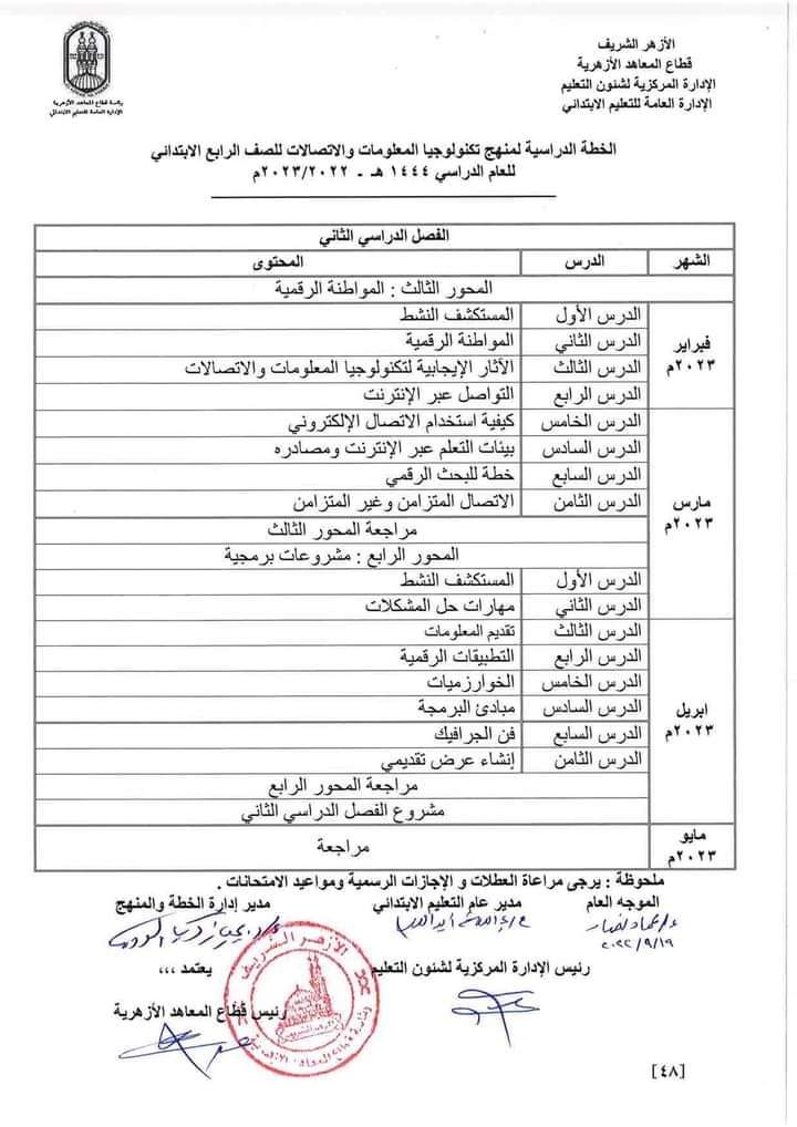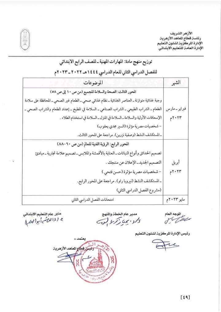 وجاء توزيع مناهج الأزهر الجديدة 2023 للصف الرابع الإبتدائي كما هو موضح بالصور التالية :
