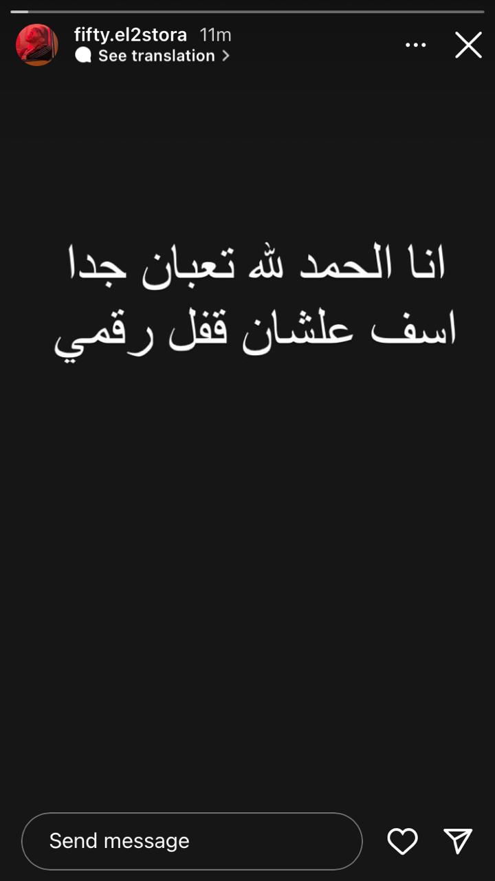 وكتب فيفتي عبر انستجرام، معتذرًا عن عدم قدرته على الرد، قائلًا: أنا الحمد لله تعبان جدًا.. أسف عشان قفل رقمي.