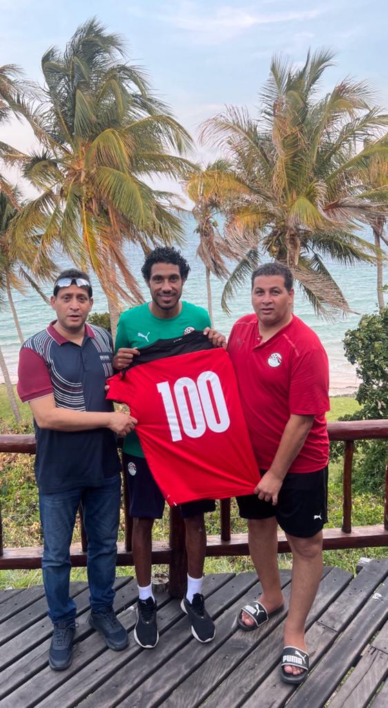 بعثة الشاطئية تحتفل بوصول مصطفى شيكا إلى 100مباراة دولية