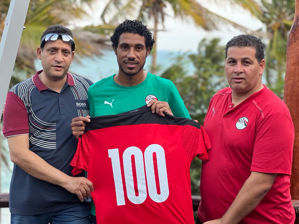 بعثة الشاطئية تحتفل بوصول مصطفى شيكا إلى 100 مباراة دولية (صور)