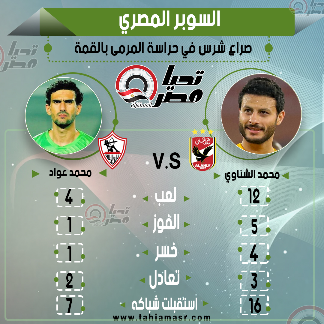 «تحيا مصر» يستعرض مقارنة بين محمد الشناوي ومحمد عواد حارسي الأهلي والزمالك خلال مباريات القمة:-