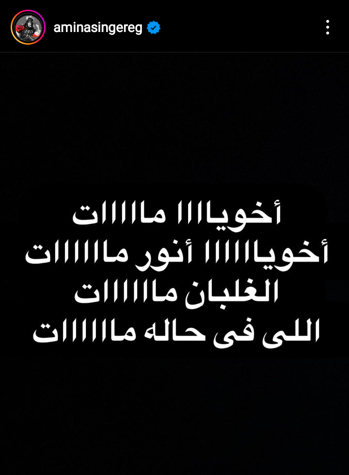 كتبت أمينة عبر حسابها الرسمي بموقع تبادل الصور والفيديوهات انستجرام، معلنة وفاة شقيقها: اخويا مات، اخويا انور مات، الغلبان مات، اللي في حاله مات".