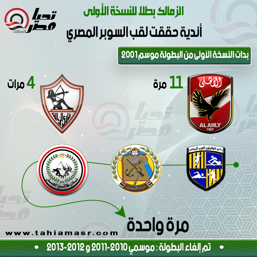 الزمالك بطلا للنسخة الأولى والأهلي الأكثر تتويجًا.. أندية حققت لقب السوبر المصري (انفوجراف)