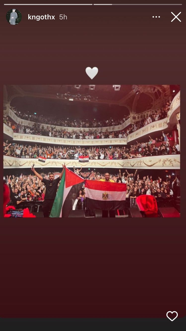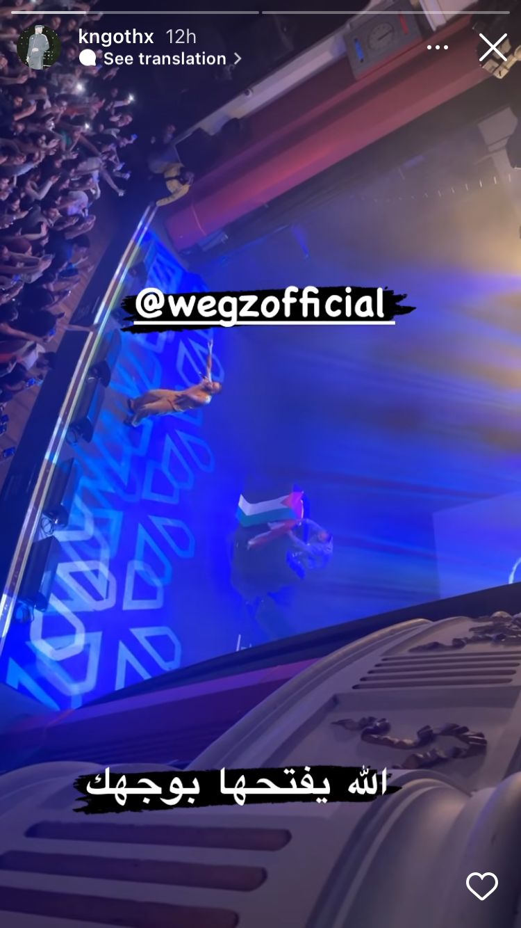 حرص مغني الراب ويجز على رفع علم فلسطين في حفله بـ لندن أمس، وذلك لدعم القضية الفلسطينية، ولم تكن هذه المرة الأولى له.
