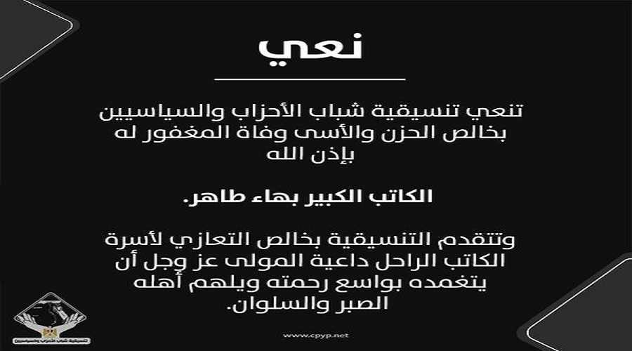 نعت تنسيقية شباب الأحزاب والسياسيين، الكاتب الكبير بهاء طاهر.