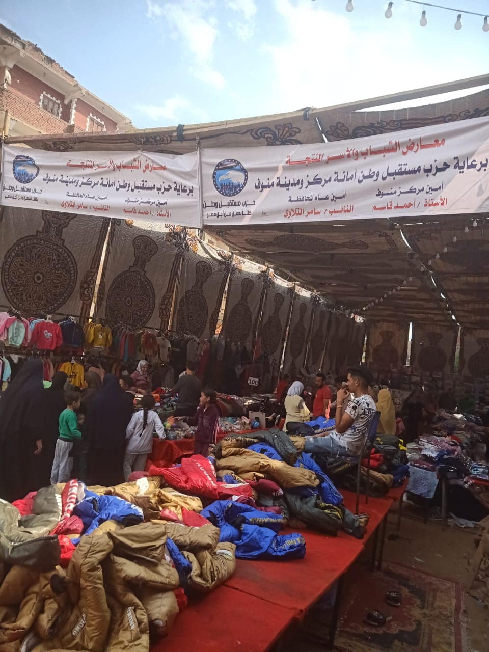 وفي محافظة المنوفية، أقامت أمانة مدينة منوف، معرضاً كبيراً لبيع جميع مستلزمات الأسرة المصرية واحتياجاتها بأسعار مخفضة، في قرية منشأة سلطان، ويضم المعرض مفروشات والملابس الشتوية الجاهزة والأدوات المنزلية وجهاز العرائس والمواد الغذائية والسلع الأساسية، لمواجهة ارتفاع الأسعار وجشع التجار، وشهد المعرض إقبالاً كثيفاً من المواطنين نظراً لجودة المنتجات المعروضة وكذا انخفاض الأسعار.