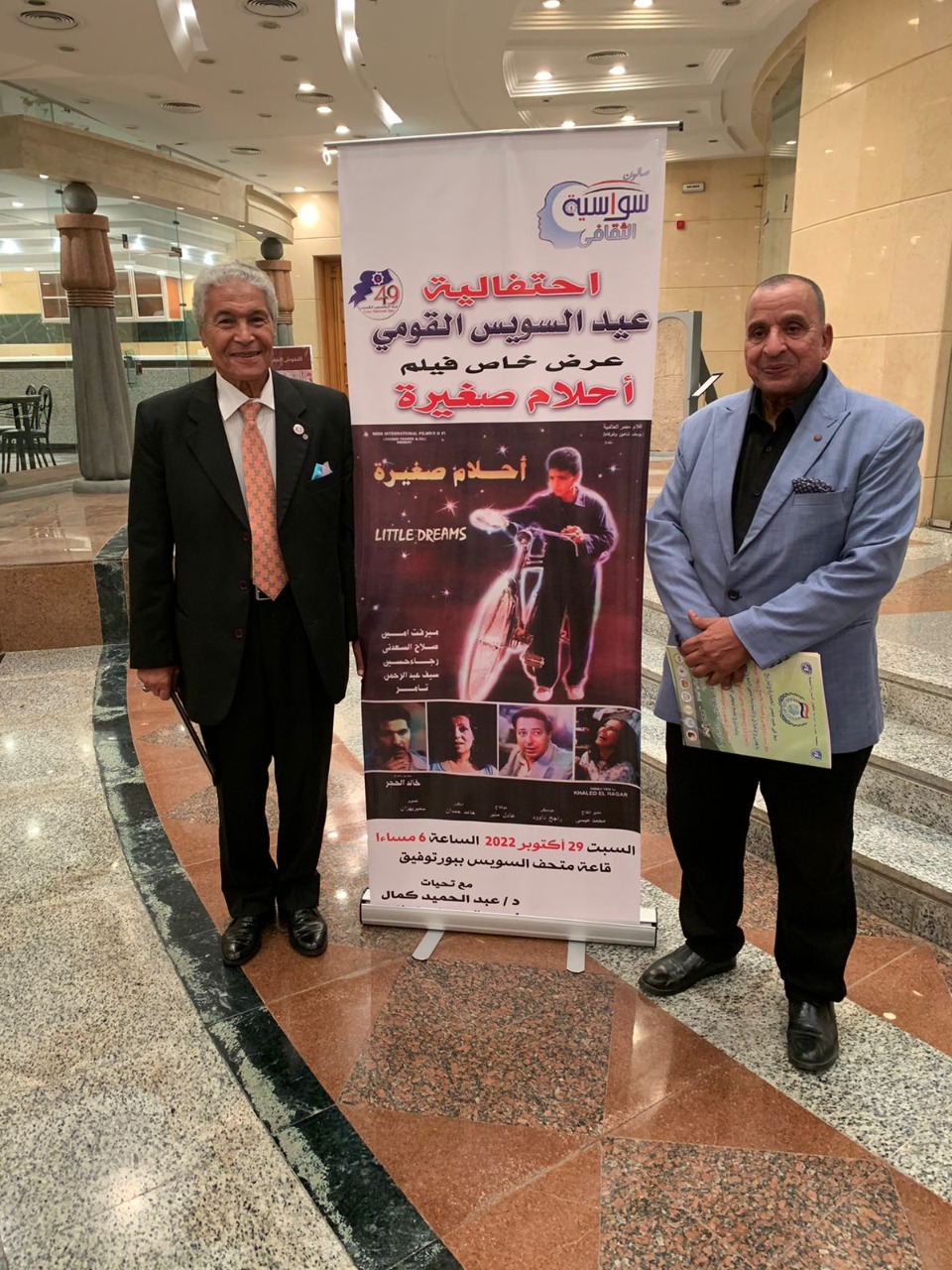 احتفل صالون سواسية الثقافي بالعيد القومي لمحافظة السويس الـ 49 بالتعاون مع متحف السويس القومي بإقامة عرض خاص لفيلم " أحلام صغيرة " بطولة ميرفت أمين وصلاح السعدني وسيف عبد الرحمن وإخراج خالد الحجر بمناسبة مرور 30 عاماً على تصويره والذي يحكي قصة السويس بعد نكسة 1967 بحضور أبطال الفيلم.