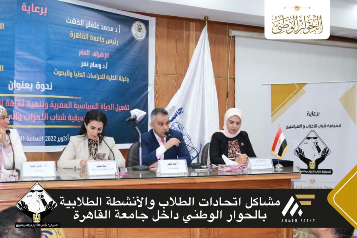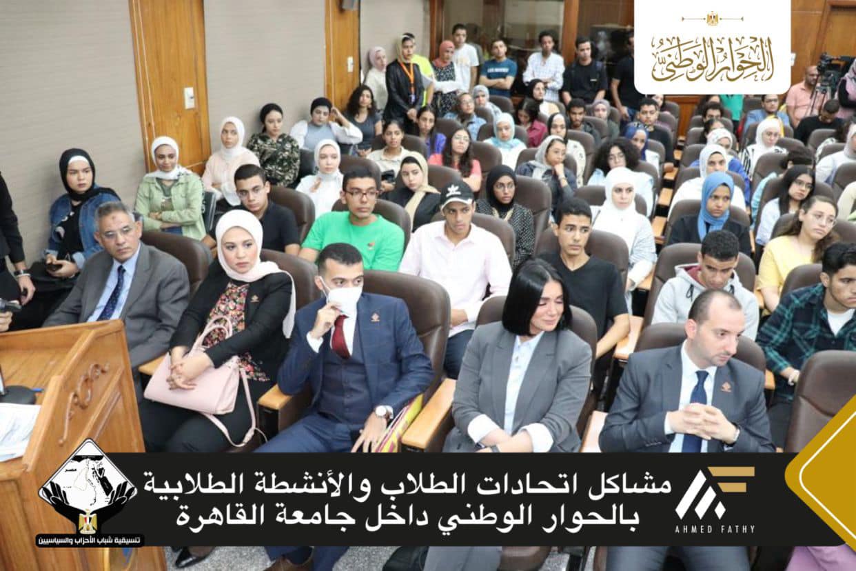 بمشاركة نائب التنسيقية أحمد فتحي.. مشاكل اتحاد الطلاب والأنشطة الطلابية بالحوار الوطني داخل جامعة القاهرة