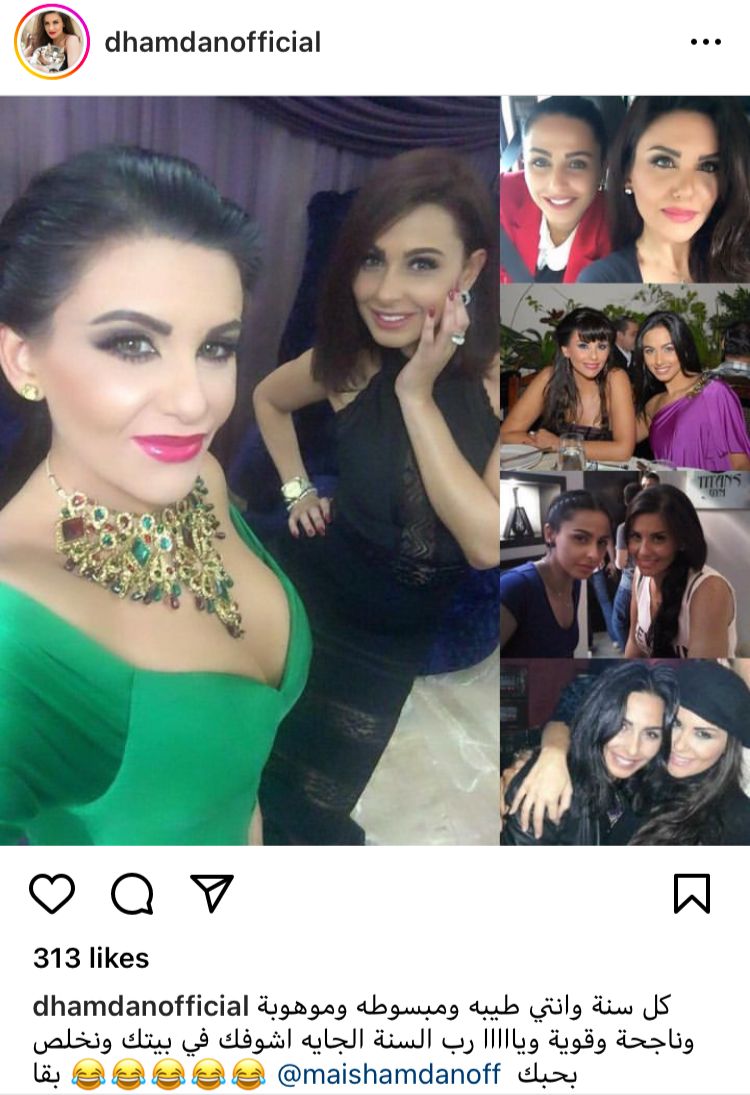 ونشرت دانا حمدان صورة مع شقيقتها ميس، وذلك عبر حسابها الرسمي بموقع تبادل الصور والفيديوهات الشهير انستجرام، وعلقت: كل سنة وأنتي طيبة ومبسوطة وموهوبة وناجحة وقوية ويا رب السنة الجايه اشوفك في بيتك ونخلص بقى.. بحبك.